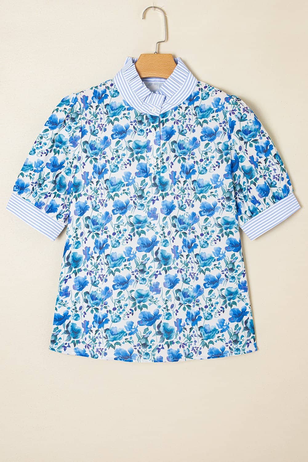 - Delight in the charming fusion of floral prints and stripes on this blouse.
