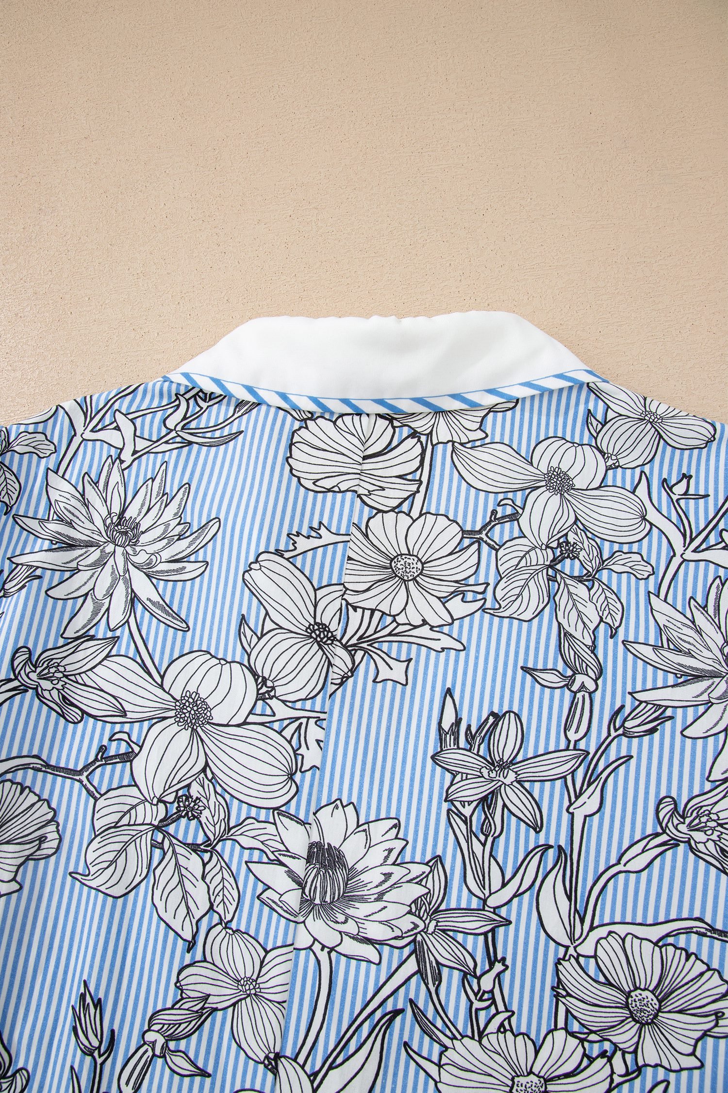 Lightweight fabric keeps the floral striped blouse comfortable all day.