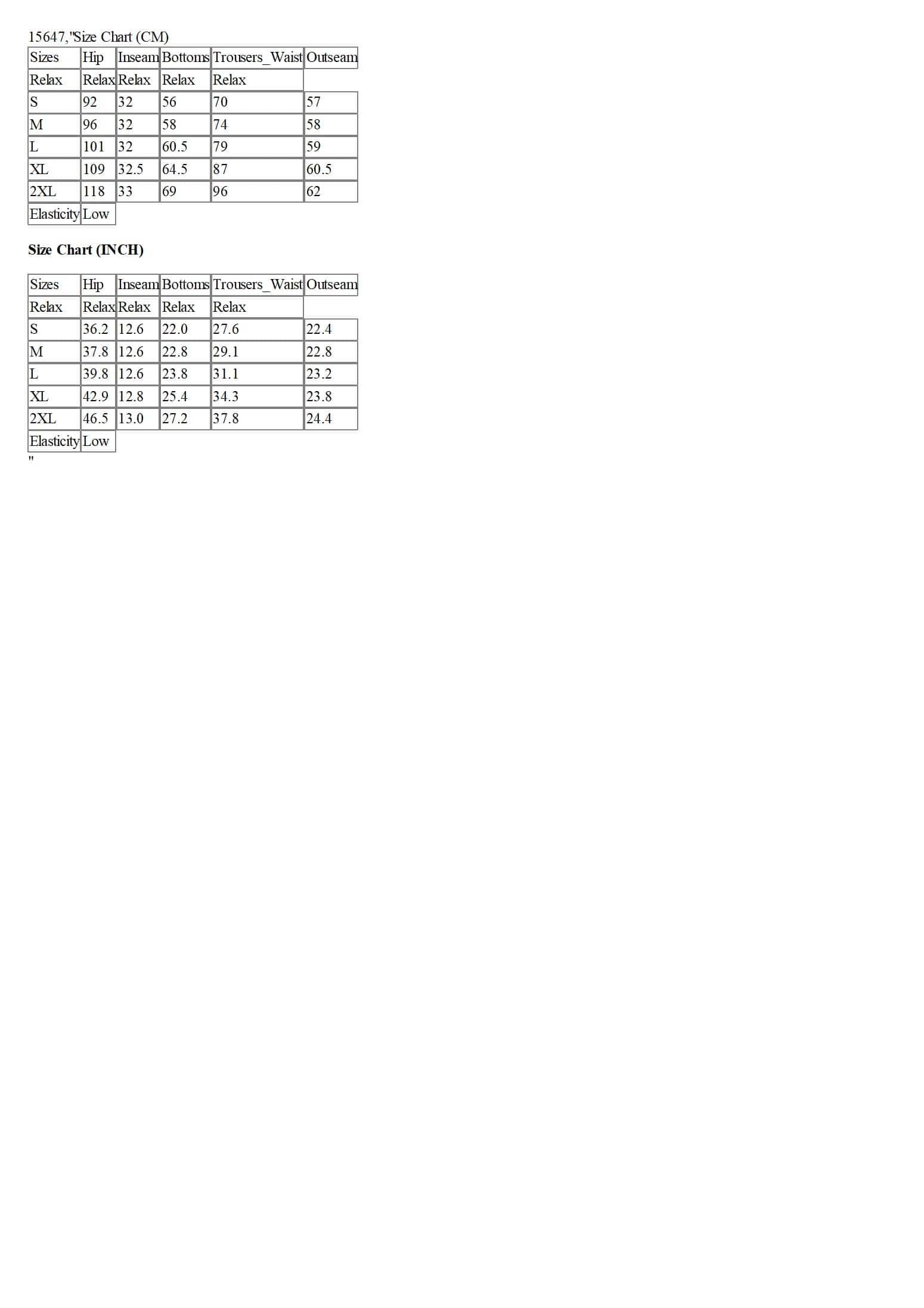 Size Chart (CM)