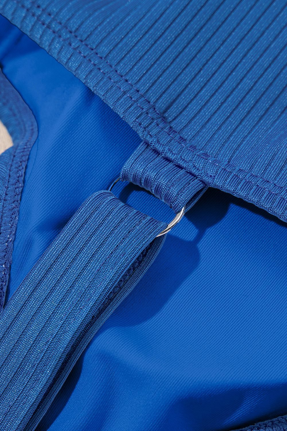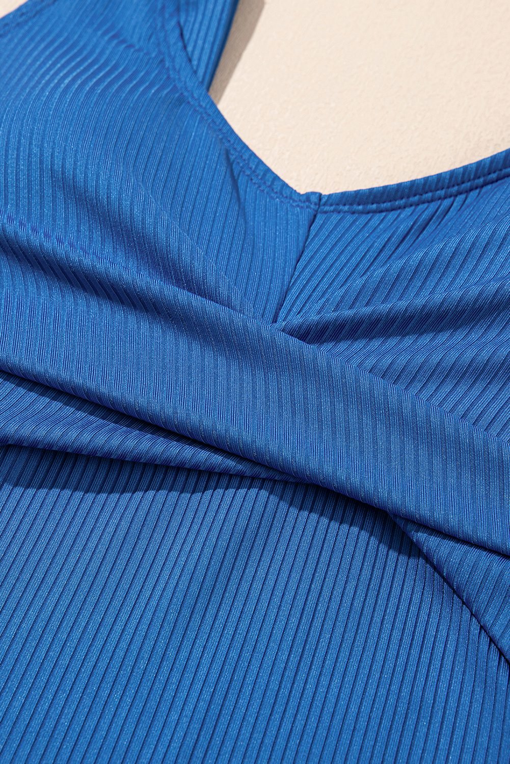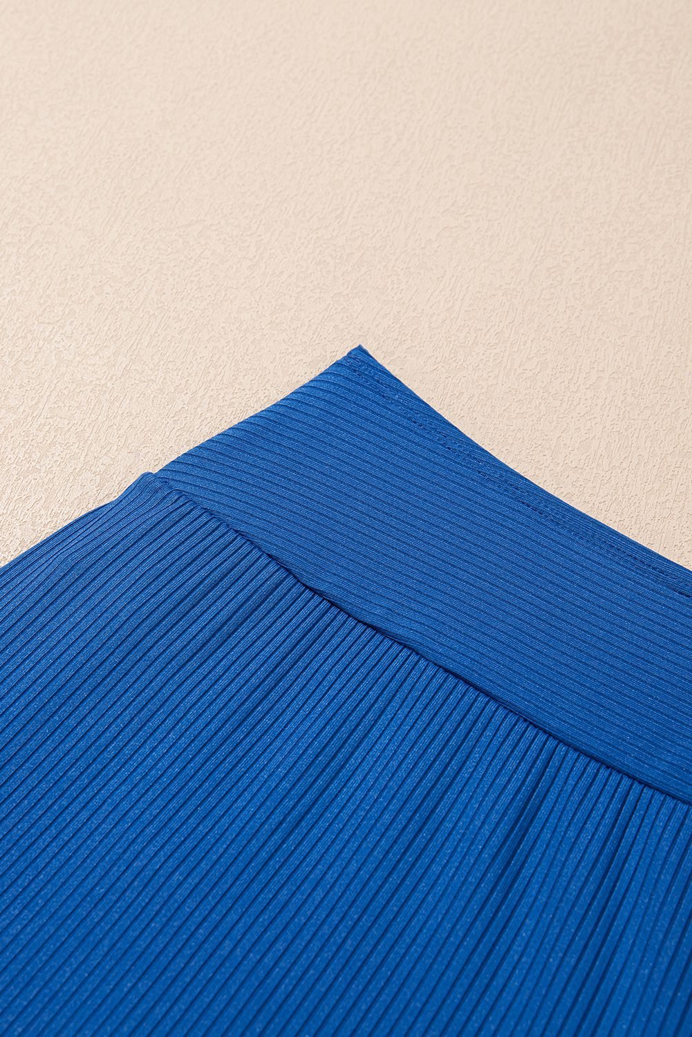 Solid color fabric with ribbed texture to enhance stretch.