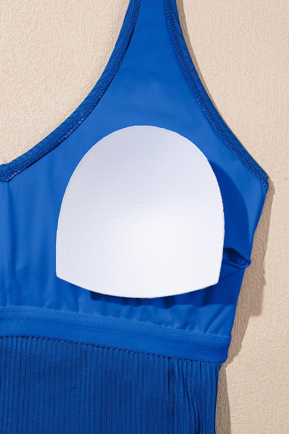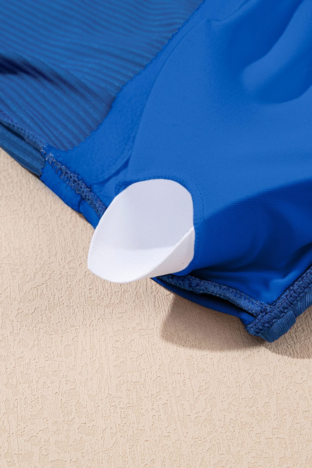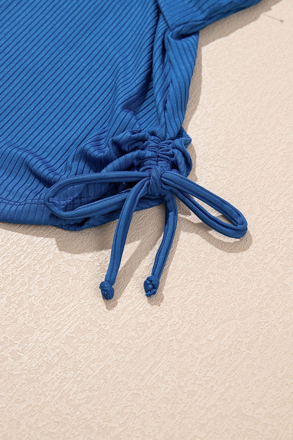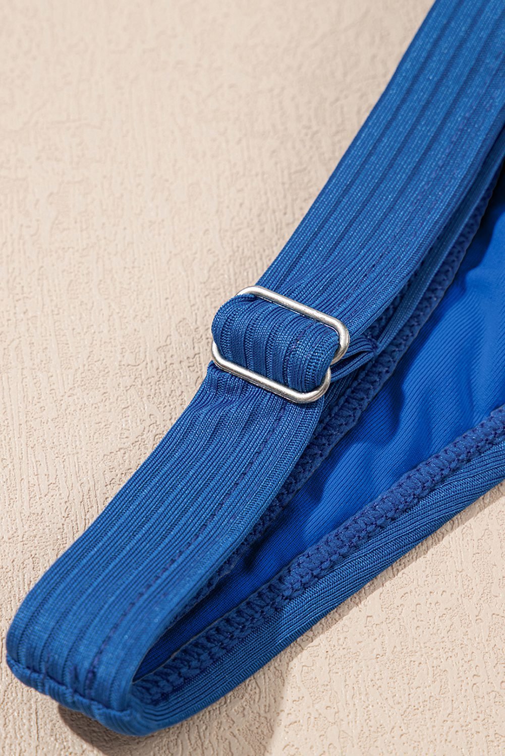Solid color fabric with ribbed texture to enhance stretch.
