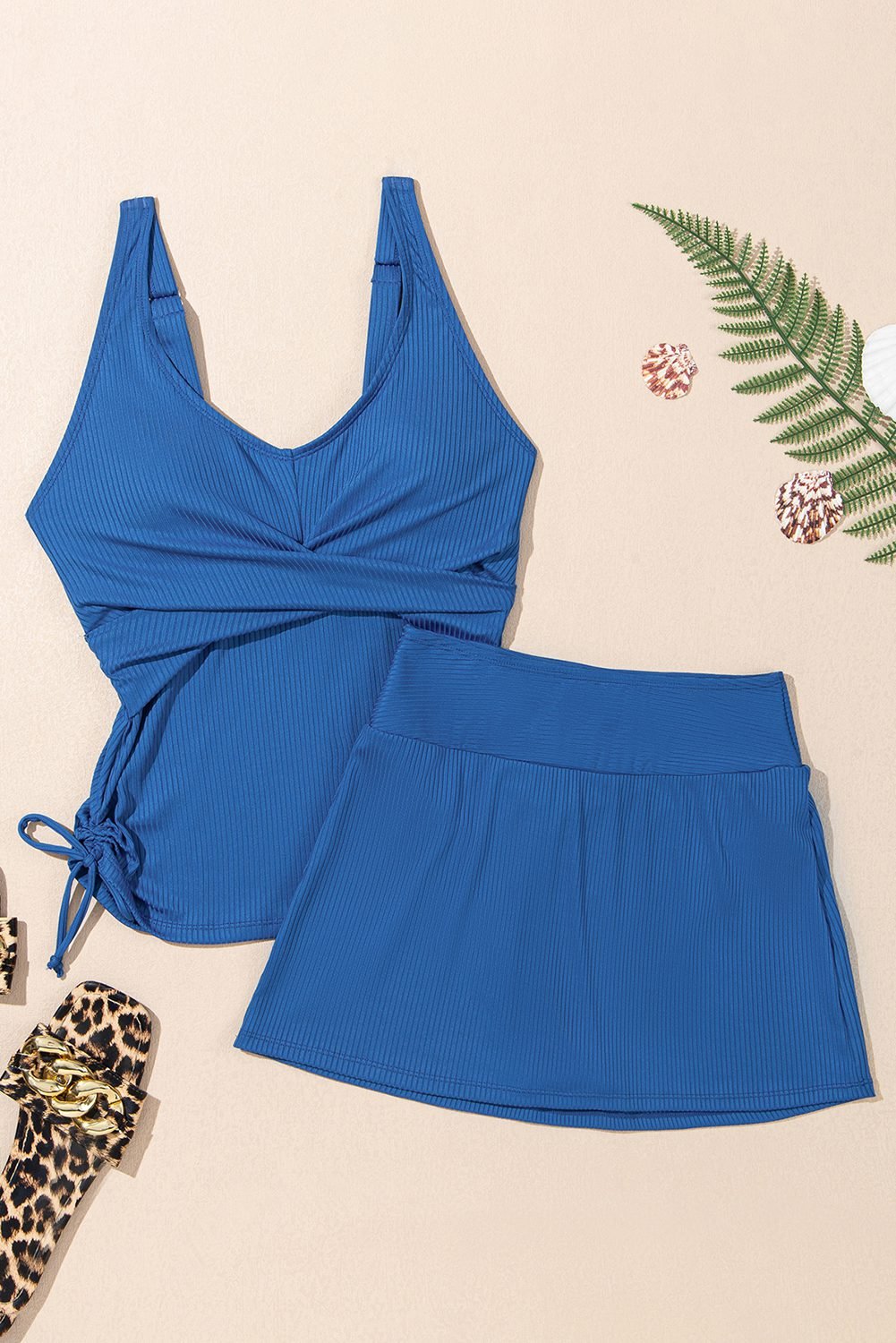 Tankini bathing suit with top and skort for women.