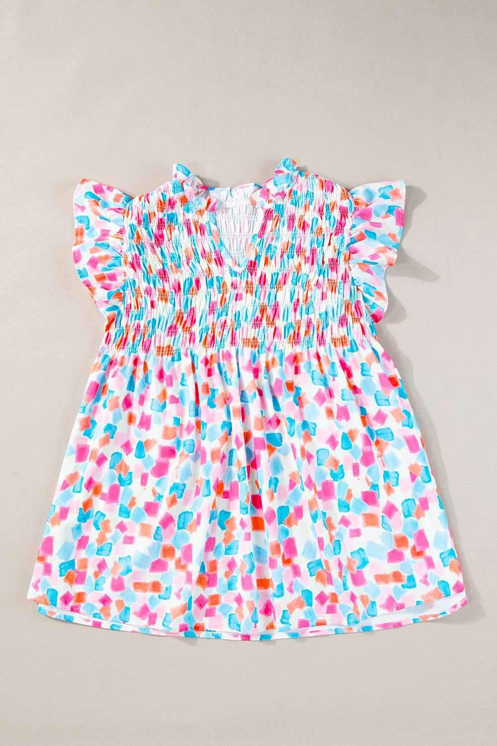 The ruffled sleeves give a playful and trendy vibe