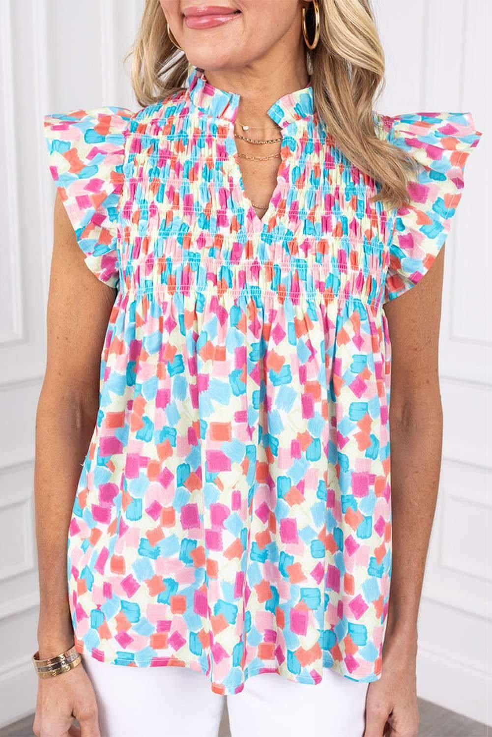 - Stand out with the eye-catching and unique abstract print on this blouse