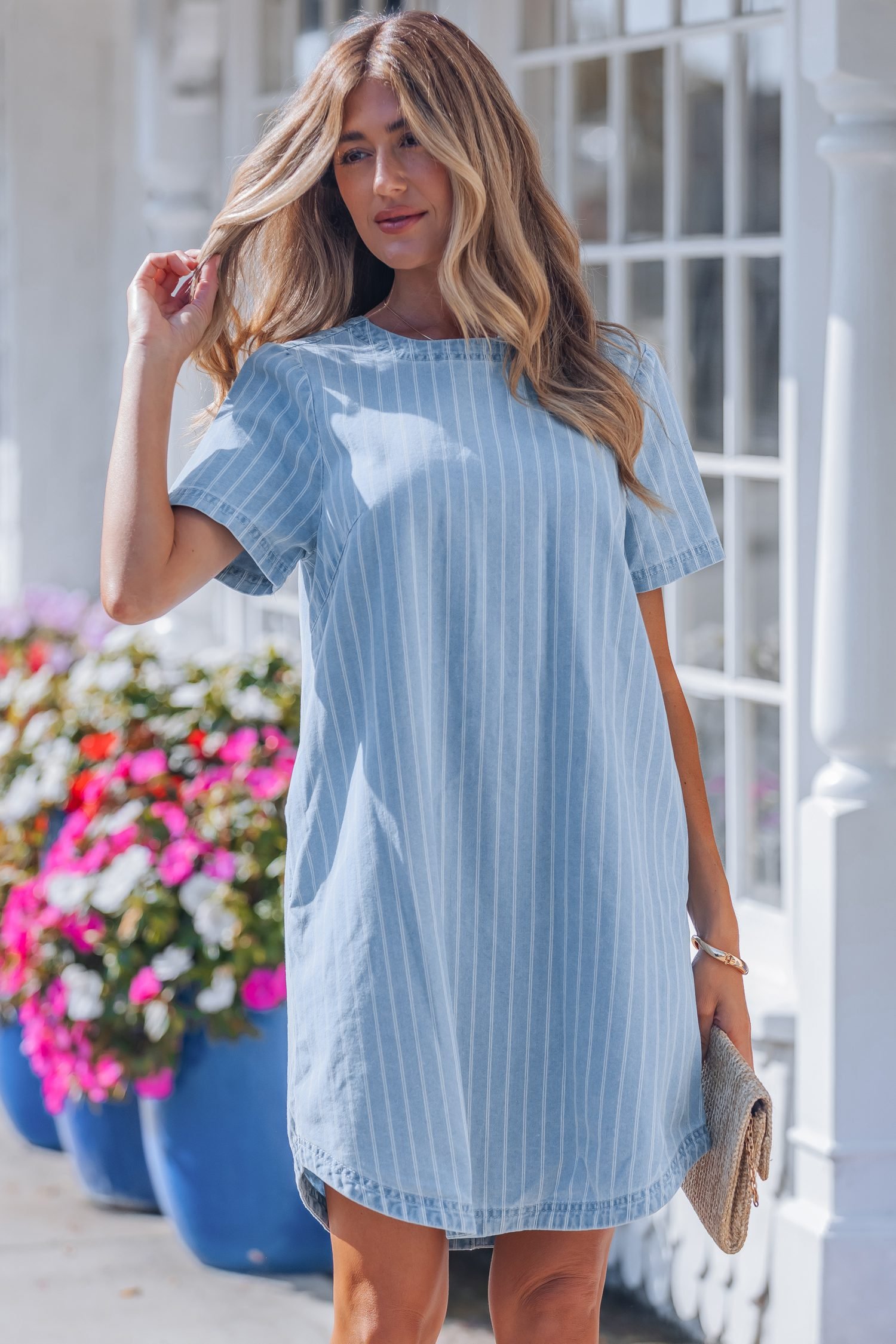 Mini dress silhouette offers a casual, flattering everyday fit.