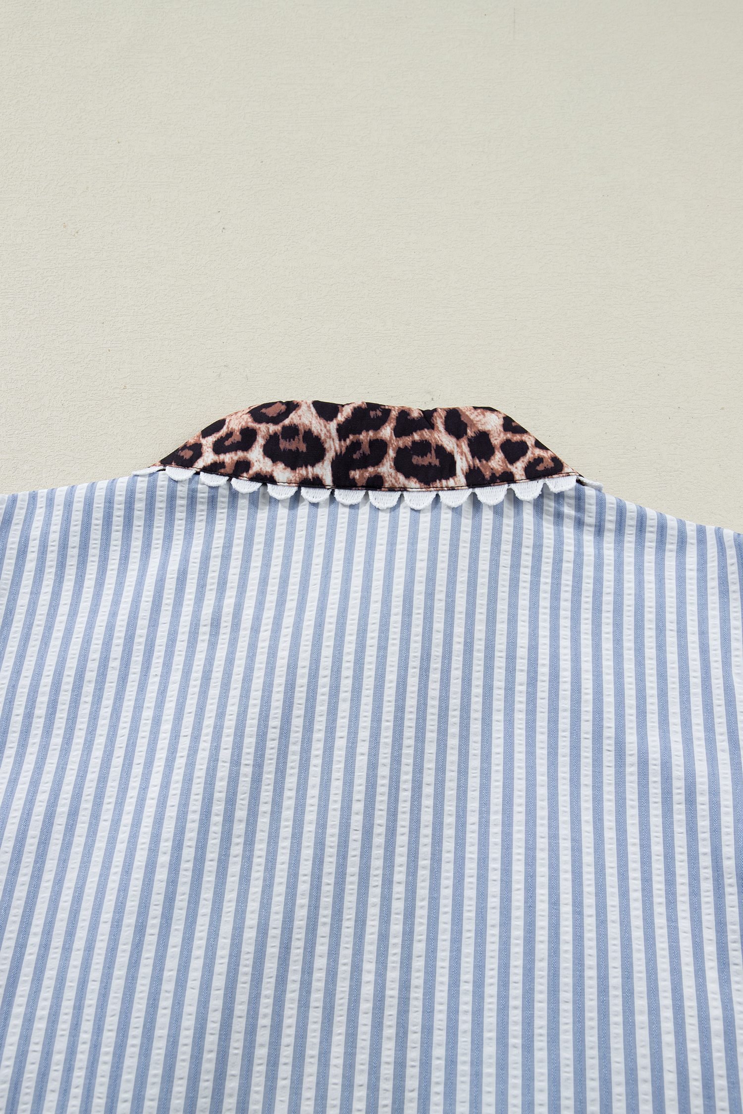 The leopard collar patchwork adds a bold, stylish contrast to this plus blouse.