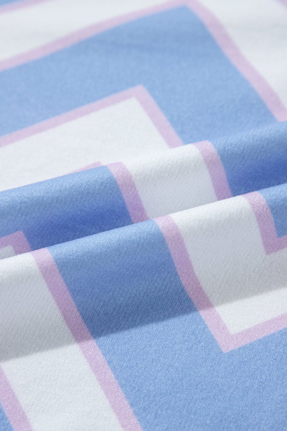 Sky Blue Zigzag Striped Print V Neck Oversized Top