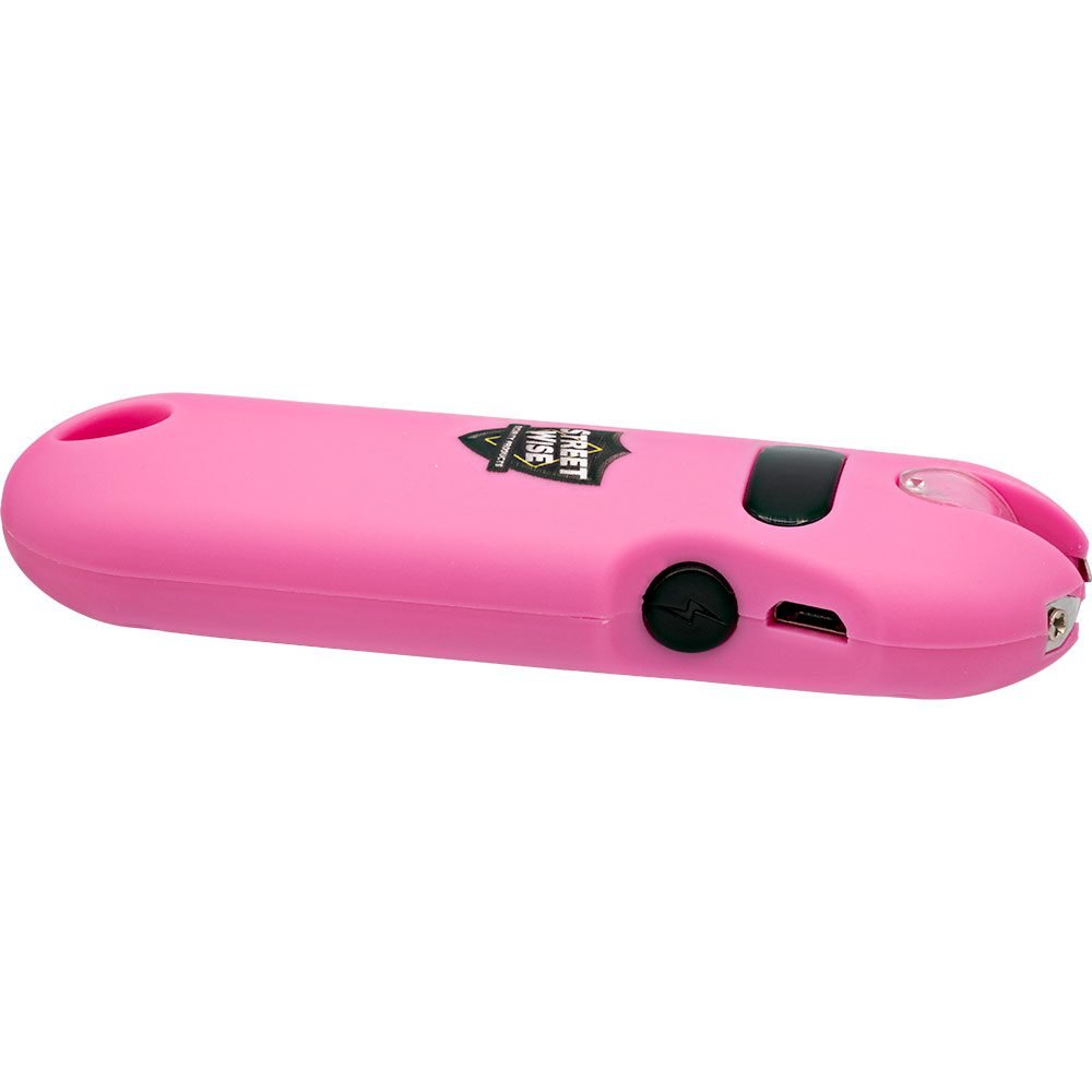 We have smart cars, smartphones, and smart homes. Why not a smart self-defense product? Want to feel safer when you?re walking your dog or navigating parking lots? You?re always better prepared to handle an attack when you have a powerful stun gun at your side. Stun guns offer excellent protection for security and come in a variety of models, sizes, builds, and capabilities. All of our stun guns are easy to carry and come with loops for easy portability and attachment to belts. Stun Gun Keychain Wholesale Introducing the world?s first smart stun gun ? the SMART 24,000,000* Keychain Stun Gun by Streetwise Security Products. This revolutionary new stun device is about a quarter of the size of real stun gun models and is light enough to be carried on a keychain. In the never-ending pursuit to build the perfect mini keychain stun gun, Streetwise has taken this one to the next level. Easy accessibility is the key to effectively defending yourself. This is the first stun gun to replace the traditional safety switch with a Touch Sensing Safety that ?senses? when the unit is in your hand. It puts the stun gun in the ?stun ready? position and automatically turns off the safety. Not having to fumble with the switches and buttons of a traditional stun gun saves you valuable time when you need to defend yourself. The design also features battery status indicator lights so you will never be without a full charge. Unlike most stungun models on the market today, this stun feature can be used while the flashlight is on (other models require you to change from flashlight mode to stun mode). The unit has rechargeable batteries already installed. To charge, plug the mini-USB end into the charging port on the stun gun and the other end into your USB charging device. A block charger (not included) will allow you to plug the mini stun gun into a wall outlet. Additionally, you can use a car plug. The battery Indicator Lights flashes while charging. Four solid lights indicate a full charge. The LED flashlight works with a touch sensor. Placing your finger over the probes will turn the flashlight on ? removing it turns it off. The flashlight will turn off automatically after 20 minutes of constant use to prevent draining the battery. You will also want to test the stun phone periodically to make sure it?s in good working order. To test it, turn off the safety by placing your finger on the Touch Sensor. With your thumb, press the Stun Activation Button for just a second to verify the stun works. Sometimes, just test firing this unit into the air is often enough to stop an attacker. As the electric current pulsates across the top, it creates an intimidating electrical sound. An attacker with any sense will be stopped in his tracks. If the sight and sound don’t stop him, a jolt from this unit certainly will. Touching the smartphone stun gun anywhere on the assailant?s body will have an effect. And you don?t have to be concerned about the effects of the charge being transferred to you. Even if the assailant touches you while being stunned, you will not feel the effects of the charge. Touching an assailant for about a second will cause minor muscle contractions and repel them quickly. If you touch them for three to five seconds it will cause loss of balance and muscle control, mental confusion, and disorientation. It is advised that the device should not be used for longer than five seconds. Anywhere you use the high voltage stun gun will be effective but the most vulnerable places on a human body to stun is the upper shoulder, the upper hip, and below the rib cage. All of the effects are temporary and doesn?t cause any permanent harm, but it will allow you enough time to escape from your attacker. Stock bulk stun guns for your customers today, because stun guns are an intimidating and effective self-defense tool. This model also makes a great affordable option, and finding a reliable cheap stun gun these days is hard! Whether you want a strong weapon near your nightstand or a flashlight with a kick to take on your nightly dog walk, we have an option for you. That?s why Cutting Edge Products is the best place to buy stun guns and wholesale self defense products. FEATURES US Design Patent No. US D889,591 S: Please contact us for additional information and supporting documents. Micro USB Charging Port: Charging the unit is simple. You can use the included USB charging cord in your computer’s USB port or use your own wall block charger in an electrical outlet or car charger. It is recommended that you charge the unit for 3-4 hours prior to its first use. Powerful Stun Gun: Just test firing this unit into the air is often enough to stop an attacker. As the electric current pulsates across the top, it creates an intimidating electrical sound. An attacker with any sense will be stopped in his tracks. If the sight and sound don?t stop him, a jolt from this unit certainly will. Touching the assailant from 1 to 5 seconds has debilitating effects from muscle contractions to loss of balance and muscle control. Touch Sensing Safety: Senses when the unit is in your hand, puts it in the ?stun ready? position and automatically turns off the safety. You also use the sensor to turn on the LED flashlight. LED Flashlight: This stun gun has a LED flashlight that provides a convenient source of light whenever you need it. Having a dependable and useful light source can make a difference in many situations. And it doesn?t have to be switched off to use the stun gun. Lifetime Warranty: You can purchase with confidence. Streetwise Security Products, the leader in the stun gun industry makes The SMART 24,000,000 Keychain Stun Gun using the highest quality components and it comes with a lifetime warranty. Additional Accessories and Features: The Smart 24,000,000 Keychain Stun Gun comes with a rubberized armor coating that protects the unit and ensures a firm grip. It also has a quick-release key chain that gives you easy access and allows