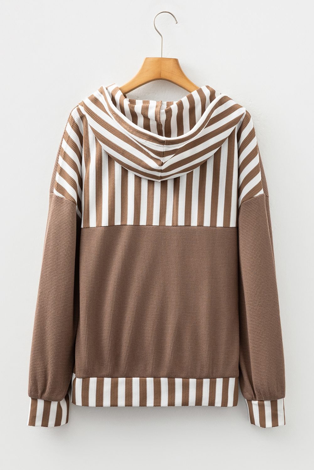 - The striped patchwork adds chic classic vibe to this hooded pullover.
