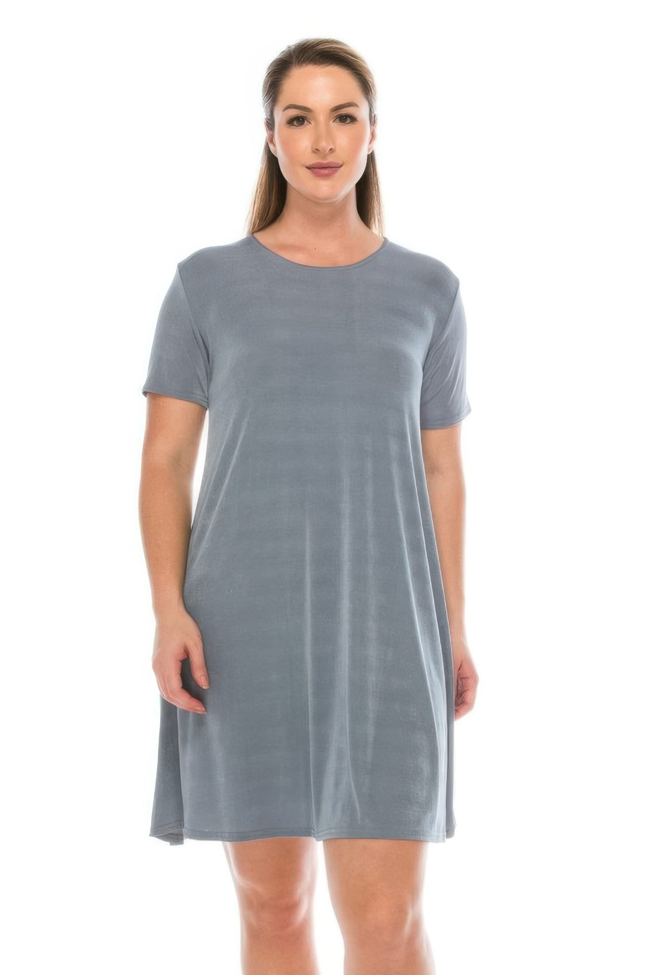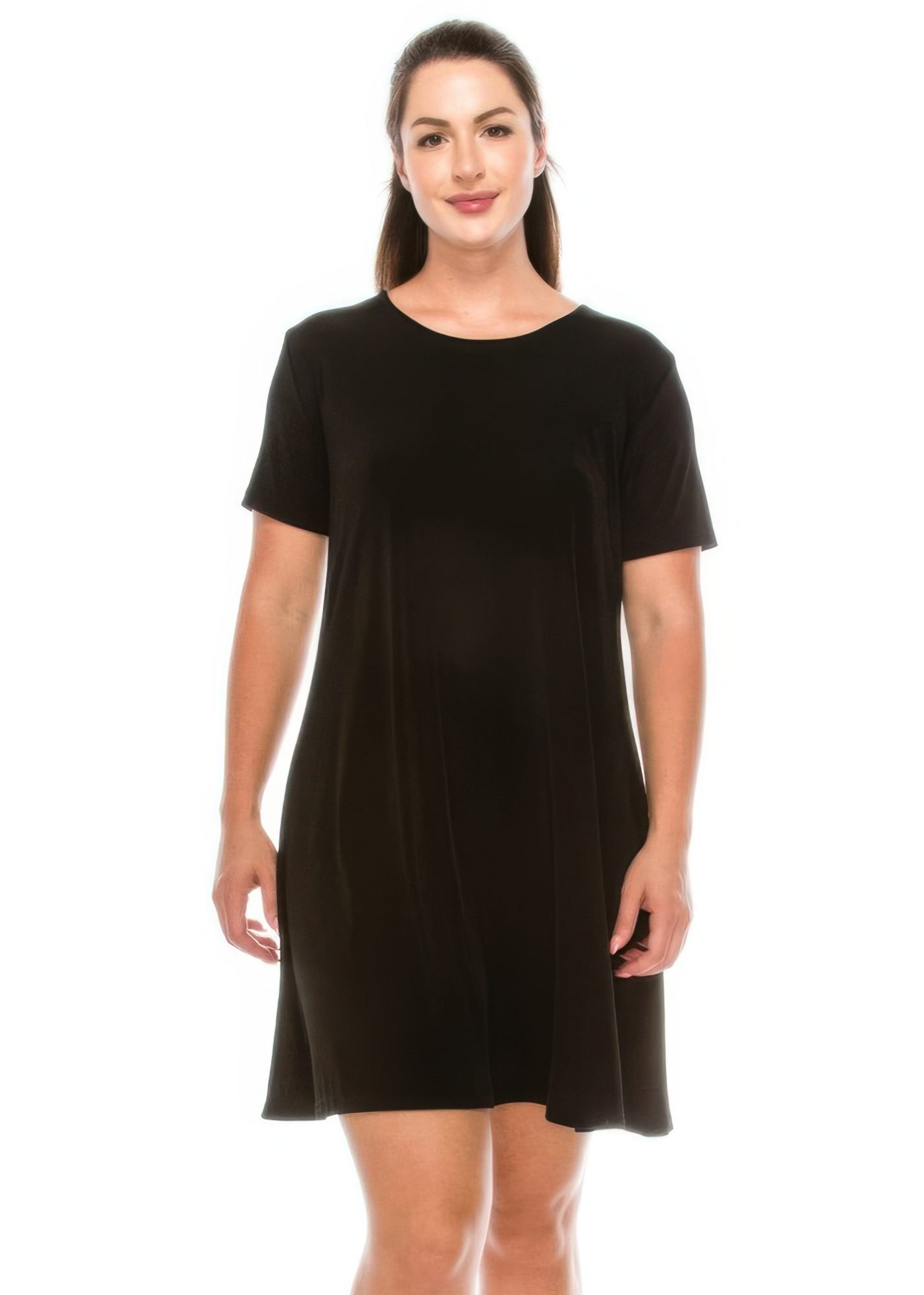 Product Description: Stay cool and confident in this stretchy short sleeve dress designed for effortless style. With a soft round neckline and classic short sleeves, this dress delivers a flattering, easy-to-wear silhouette. Crafted from a flexible polyester-spandex blend, it offers comfort and a smooth fit throughout the day. The 37-inch length makes it ideal for casual wear, while still polished enough for dressier occasions. Made in the USA, it’s a versatile addition to your everyday wardrobe. Pair it with sandals or sneakers for a go-to seasonal look. Product Details: 90% Polyester, 10% Spandex Short sleeve with soft round neckline Comfortable 37″ length for everyday wear Stretchy fabric for a flattering fit Made in the USA Hand or machine wash cold Size Guide: For accurate sizing guidance, please review our size chart available on the website. Shipping and Returns: Fast Shipping: We offer speedy delivery to your doorstep. Hassle-Free Returns: If you’re not completely satisfied, our flexible return policy ensures your peace of mind.