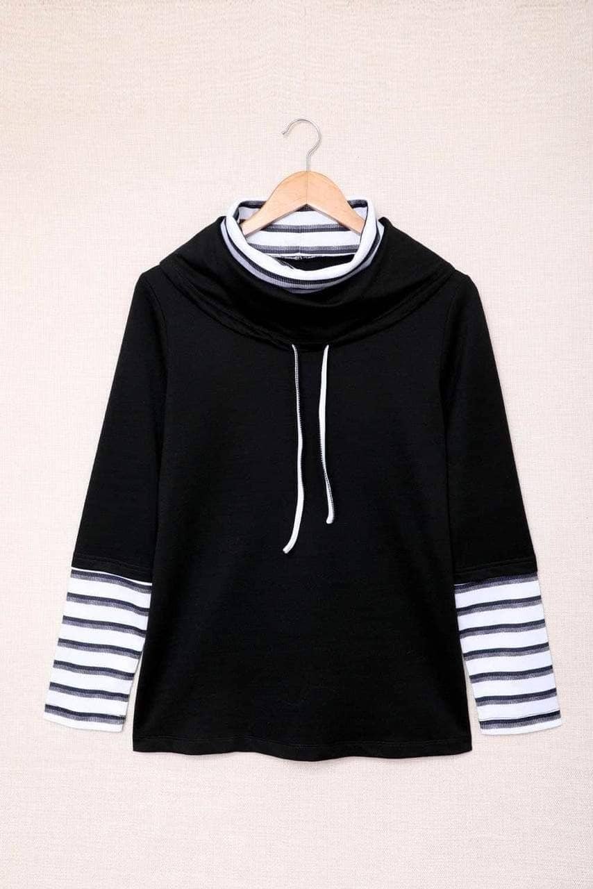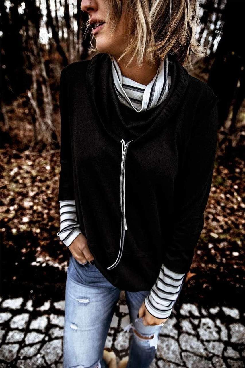 The sweatshirt with the striped splicing makes it more chic