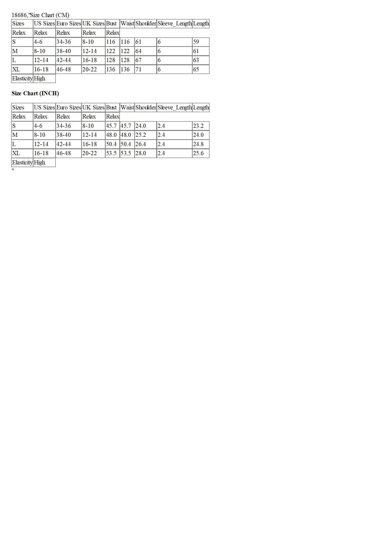 Size Chart (CM)