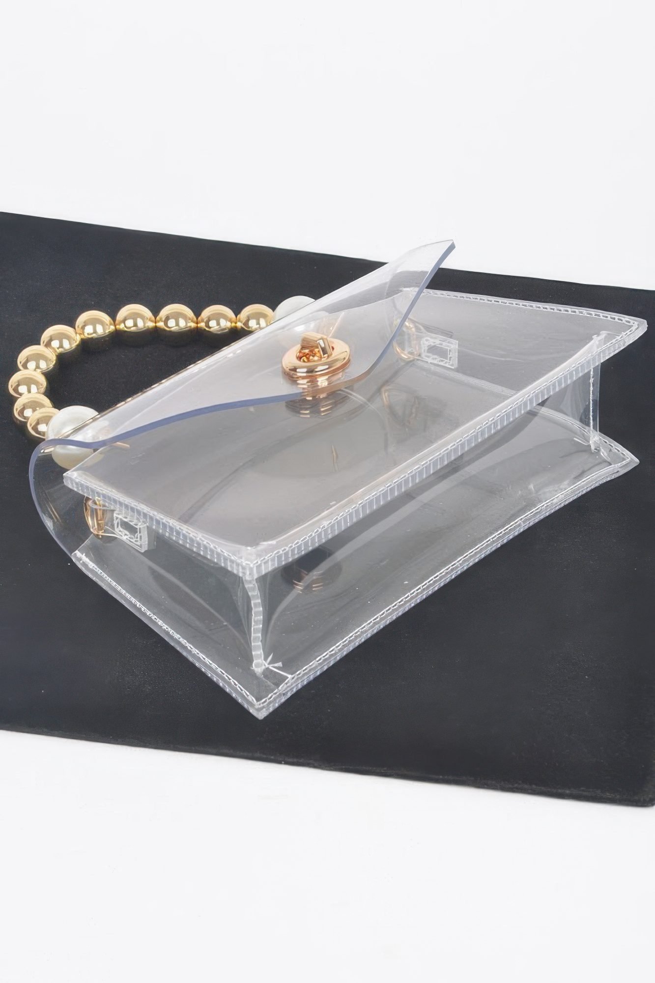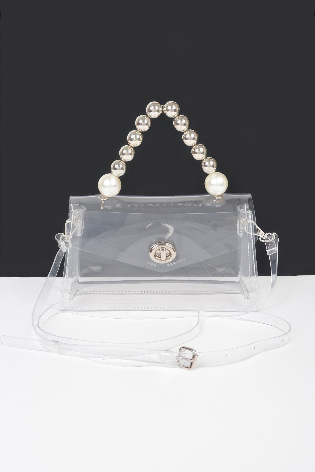 Product Description: Make a chic and modern statement with the Transparent CCB Handle Flap Clutch, a unique accessory designed to turn heads. Crafted from clear PVC and accented with elegant beads and pearls, this clutch brings together transparency and embellishment in perfect harmony. The standout CCB handle adds a sculptural touch, while the structured flap closure keeps your essentials secure. Compact and eye-catching, it’s ideal for weddings, evening events, or elevating a minimalist ensemble with a pop of glam. Product Details: Clear PVC construction with pearl and bead embellishments Sculptural CCB handle adds a unique design element Dimensions: 8.5″W x 4.5″H x 2″D Flap closure keeps contents secure and organized Perfect for special occasions, parties, or standout styling moments Size Guide: For accurate sizing guidance, please review our size chart available on the website. Shipping and Returns: Fast Shipping: We offer speedy delivery to your doorstep. Hassle-Free Returns: If you’re not completely satisfied, our flexible return policy ensures your peace of mind.