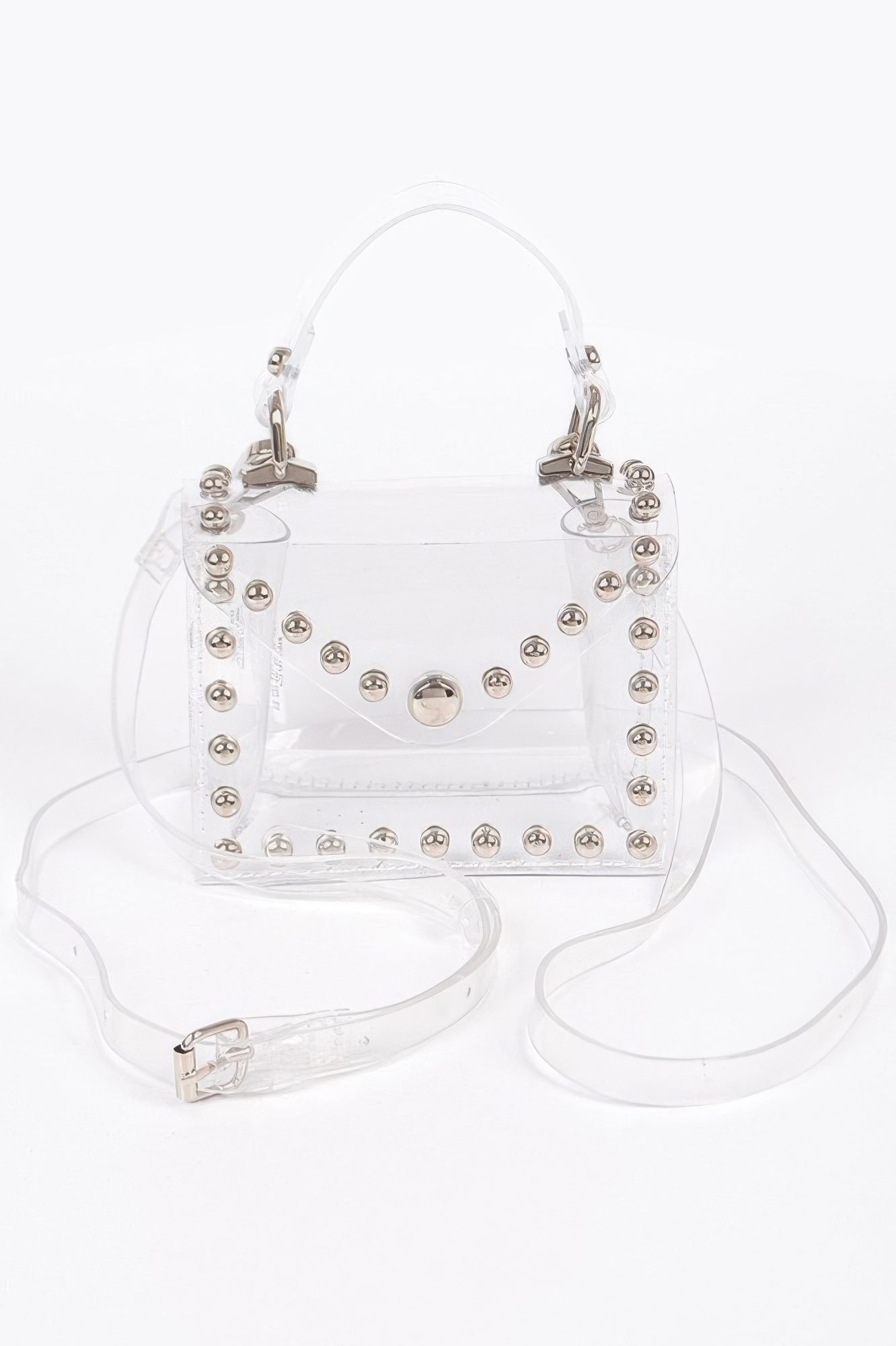 Compact and edgy, the Transparent Studded Mini Bag makes a bold statement in a petite size. Crafted from clear PVC and finished with metal studs, it blends modern minimalism with a touch of attitude. Perfect for festivals, nights out, or adding an unexpected twist to everyday wear.