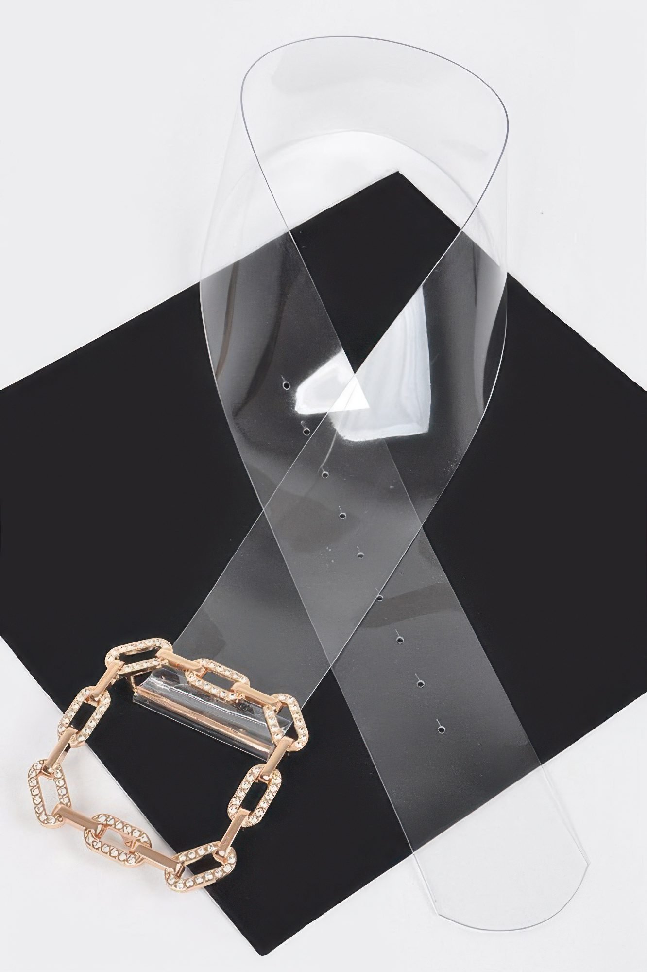 Product Description: Transparent Waist Belt delivers a clean, modern look with a sleek edge. Made from clear PVC, this belt offers styling versatility that works with a wide range of silhouettes and outfits. Measuring approximately 2.5 inches wide and 39.5 inches long, it’s designed to define the waist while blending seamlessly into any ensemble. Whether paired with dresses, blazers, or layered over outerwear, it adds structure without distraction. The smooth finish and polished hardware complete the minimalist appeal. A great choice for fashion-forward styling with a unique twist. Product Details: Approx. width: 2.5″, length: 39.5″ Made from transparent PVC Smooth, structured silhouette Minimalist design for easy pairing Ideal over dresses, jackets, or shirts Polished hardware for clean finish Size Guide: For accurate sizing guidance, please review our size chart available on the website. Shipping and Returns: Fast Shipping: We offer speedy delivery to your doorstep. Hassle-Free Returns: If you’re not completely satisfied, our flexible return policy ensures your peace of mind.