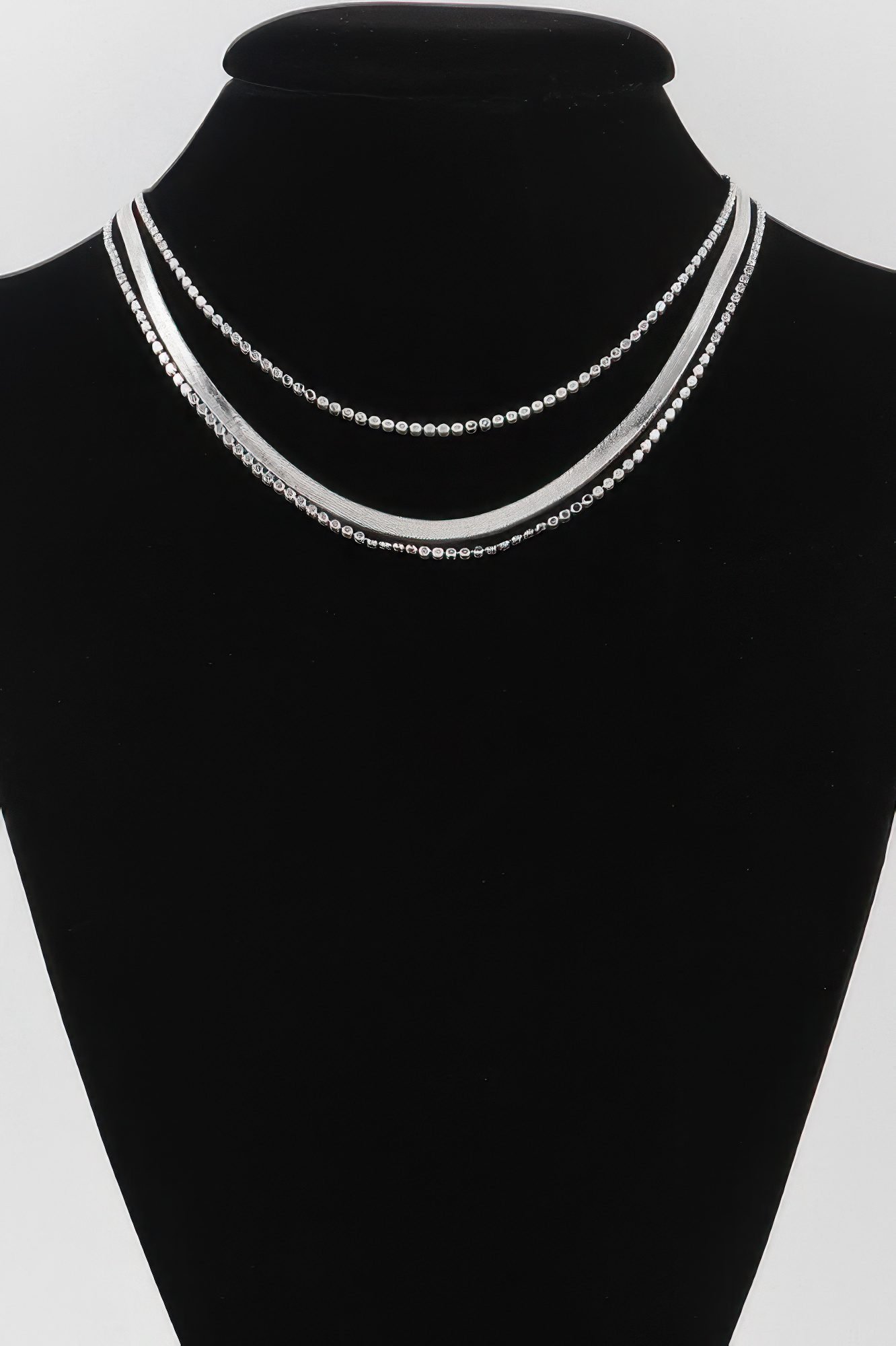 Product Description: This triple snake chain necklace delivers sleek shine with layered dimension. Designed with three smooth chains, it creates a bold yet refined look. The fluid construction lays flat against the neckline. Lightweight materials ensure comfortable wear throughout the day. Its polished finish enhances both casual and elevated outfits. The layered design eliminates the need for additional accessories. This necklace is a modern essential for confident styling. Product Details: Triple snake chain design Layered necklace silhouette Smooth, polished finish Approximate length: 14 inches Ideal for everyday or evening wear Size Guide: For accurate sizing guidance, please review our size chart available on the website. Shipping and Returns: Fast Shipping: We offer speedy delivery to your doorstep. Hassle-Free Returns: If you’re not completely satisfied, our flexible return policy ensures your peace of mind.