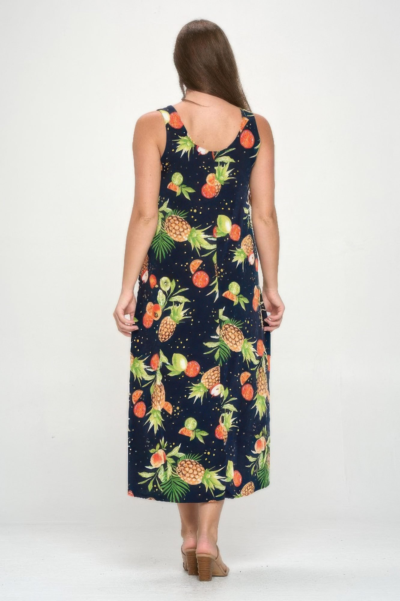 Make a vibrant statement with the Tropical Print Stretchy Maxi Dress. Designed in a variety of eye-catching prints, this sleeveless long dress features a soft round neckline and a flowing silhouette for easy elegance. Crafted from a smooth polyester-spandex blend, it offers stretch, comfort, and a flattering drape. Ideal for sunny days, vacations, or relaxed evenings out, this maxi dress exudes effortless charm. Made in the USA, it brings a perfect balance of comfort and tropical flair to your wardrobe.