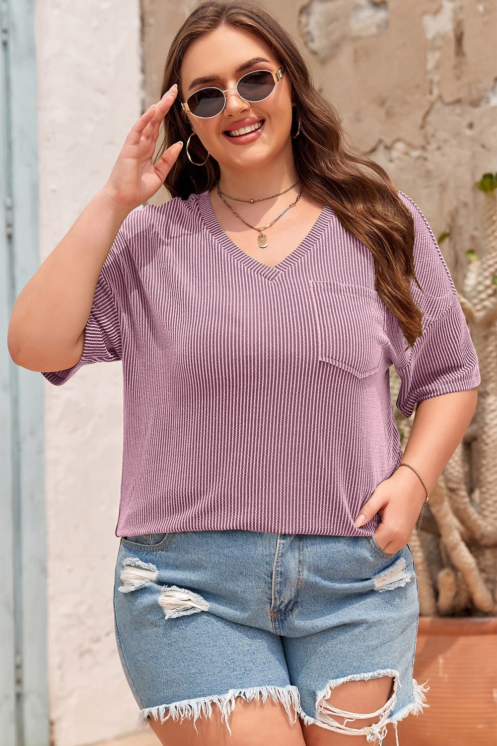 - The textured fabric makes this tee fashionable