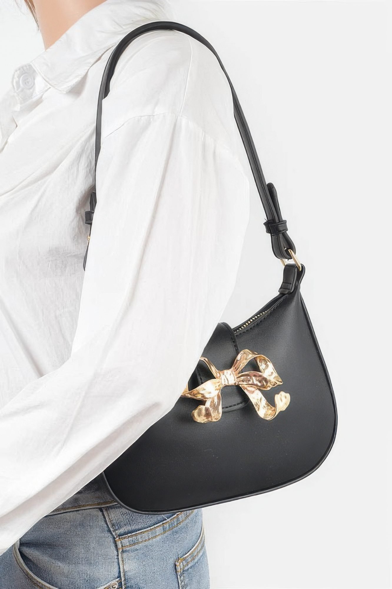 Product Description:Chic and compact, the Vegan Leather Small Hobo Bag with Metal Ribbon is the perfect blend of elegance and everyday ease. Crafted from smooth polyurethane, this mini hobo features a softly structured silhouette and is accented with a polished metal ribbon detail for a touch of shine. The size is ideal for carrying just the essentials, making it a stylish choice for day-to-night wear. Whether paired with casual outfits or dressier looks, this bag adds refined flair to any ensemble.Product Details:Made from Polyurethane and Mixed MetalDimensions: 8.5W x 6H x 2D inchesPolished metal ribbon accent adds a sleek finishSoft hobo shape with a modern, minimalist profileCompact size perfect for carrying daily essentialsIdeal for casual outings, date nights, or special eventsSize Guide:For accurate sizing guidance, please review our size chart available on the website.Shipping and Returns:Fast Shipping: We offer speedy delivery to your doorstep.Hassle-Free Returns: If you’re not completely satisfied, our flexible return policy ensures your peace of mind.