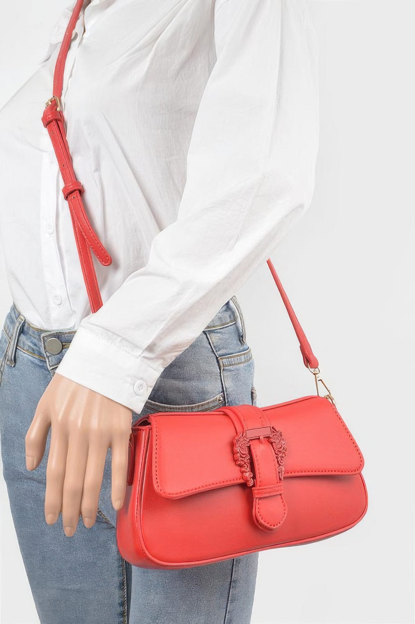 Product Description: Vegan Metal Buckle Shoulder Bag delivers standout style with its compact silhouette and eye-catching finish. Sleek and structured, this piece offers an edgy detail perfect for dressing up your everyday wardrobe. Crafted from Polyurethane, Mixed Metal, the design ensures durability with a luxe finish. Measuring approximately 10 x 5 x 2.25 inches, it’s perfectly sized for easy wear. Compact yet impactful, it’s ideal for when you want to carry just the essentials in style. Pair it with anything from jeans to dresses to elevate your overall look. Product Details: Crafted from Polyurethane, Mixed Metal Approx. dimensions: 10 x 5 x 2.25 inches Structured design with metal buckle accent Great for day-to-night wear Edgy yet versatile styling Sleek profile for light carry Size Guide: For accurate sizing guidance, please review our size chart available on the website. Shipping and Returns: Fast Shipping: We offer speedy delivery to your doorstep. Hassle-Free Returns: If you’re not completely satisfied, our flexible return policy ensures your peace of mind.