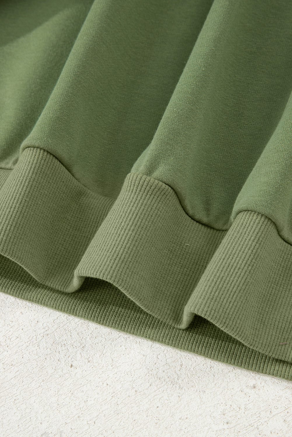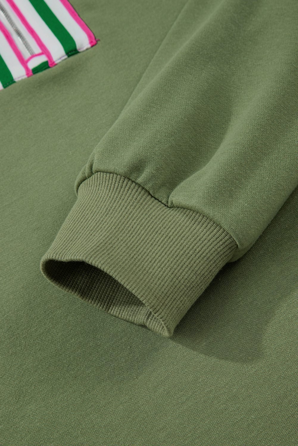 Vineyard Green Contrast Striped Patchwork Zip Collar Pullover Sweatshirt