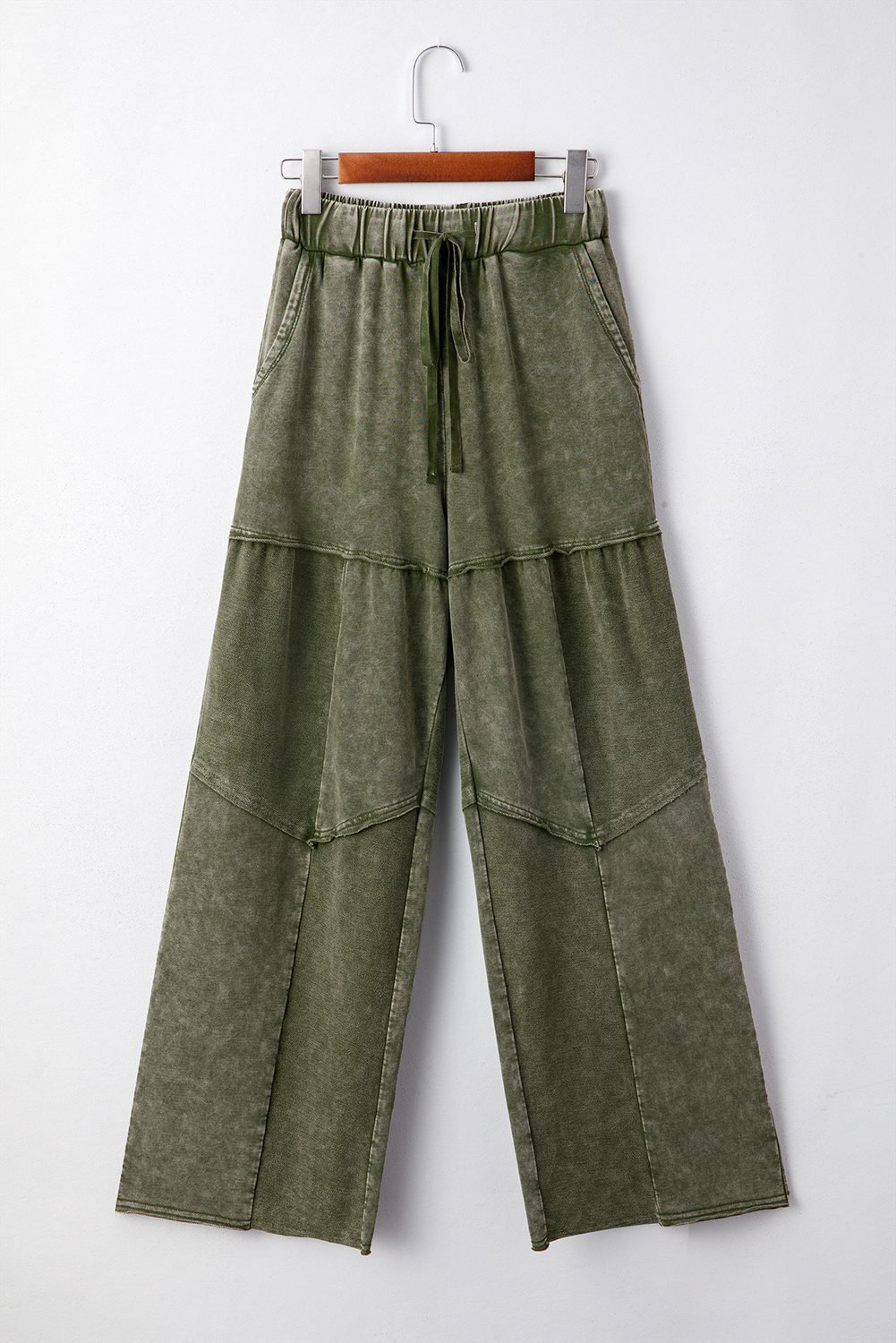 Be the first to review “Vineyard Green Mineral Wash Tiered Wide Leg Patchwork Drawstring Pants”