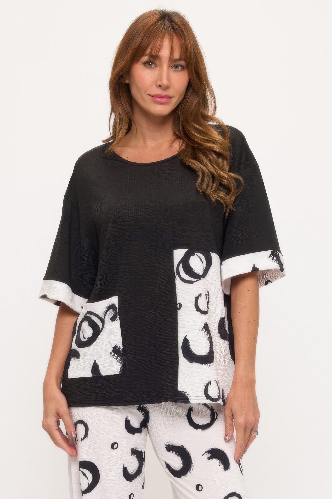 Product Description: This VP Round Neck Contrast Pocket Top brings elevated detail to everyday wear. Made from soft Venecia pleated fabric, it features a polished round neckline and a pop of contrast at the chest pocket. With its breezy short sleeves and clean silhouette, it pairs effortlessly with coordinating pants or jeans. Product Details: 95% Polyester, 10% Spandex for a flexible fit Pleated Venecia fabric offers texture and drape Contrast chest pocket adds a stylish touch Inbinding round neckline for clean structure Short sleeves for everyday comfort Made in the USA Size Guide: For accurate sizing guidance, please review our size chart available on the website. Shipping and Returns: Fast Shipping: We offer speedy delivery to your doorstep. Hassle-Free Returns: If you’re not completely satisfied, our flexible return policy ensures your peace of mind.