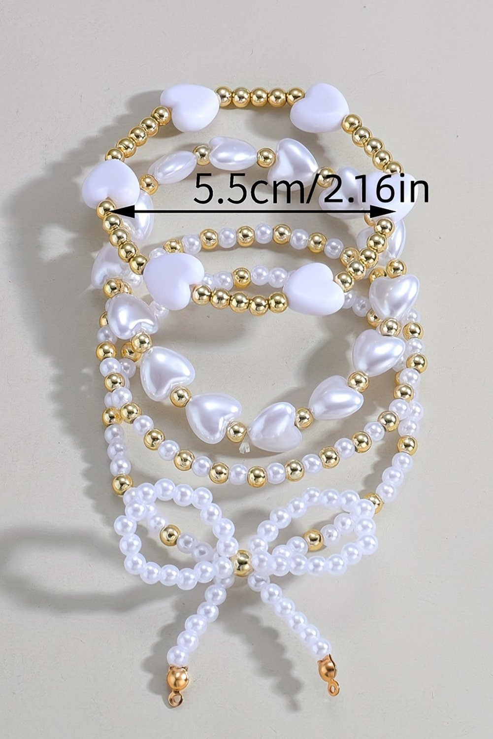 White Bow Knot Heart Shape Faux Pearl Beaded Bracelet Set