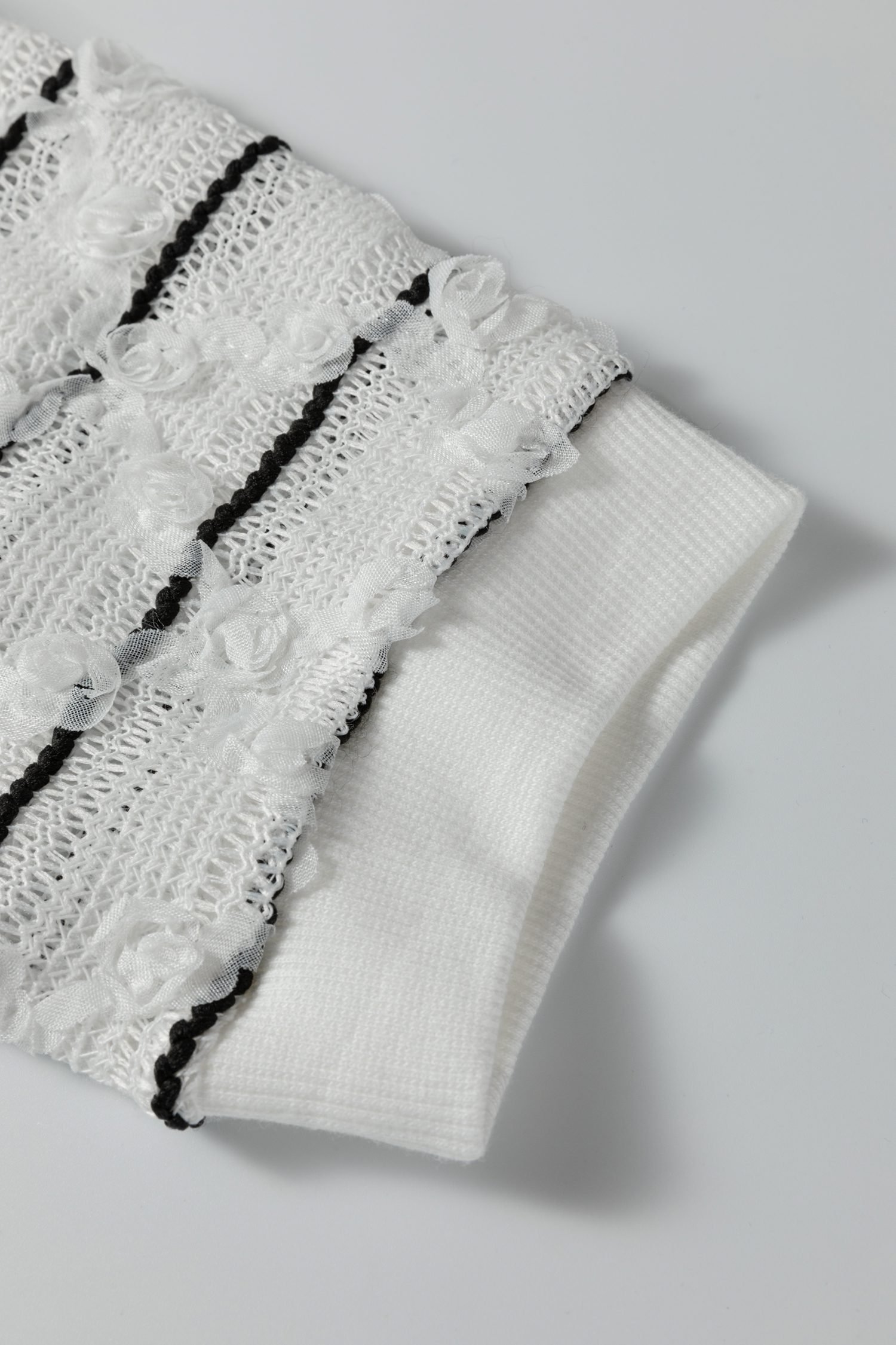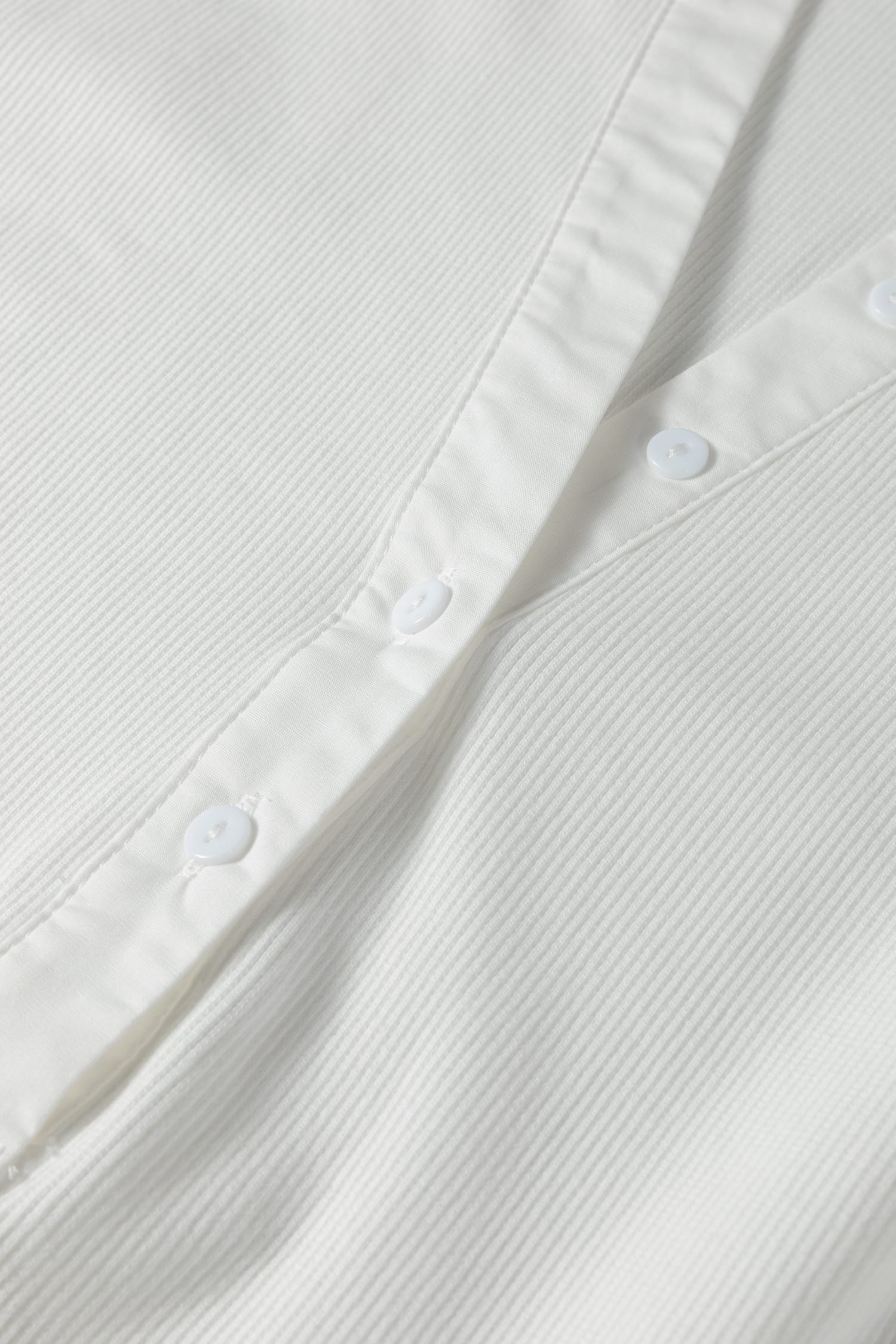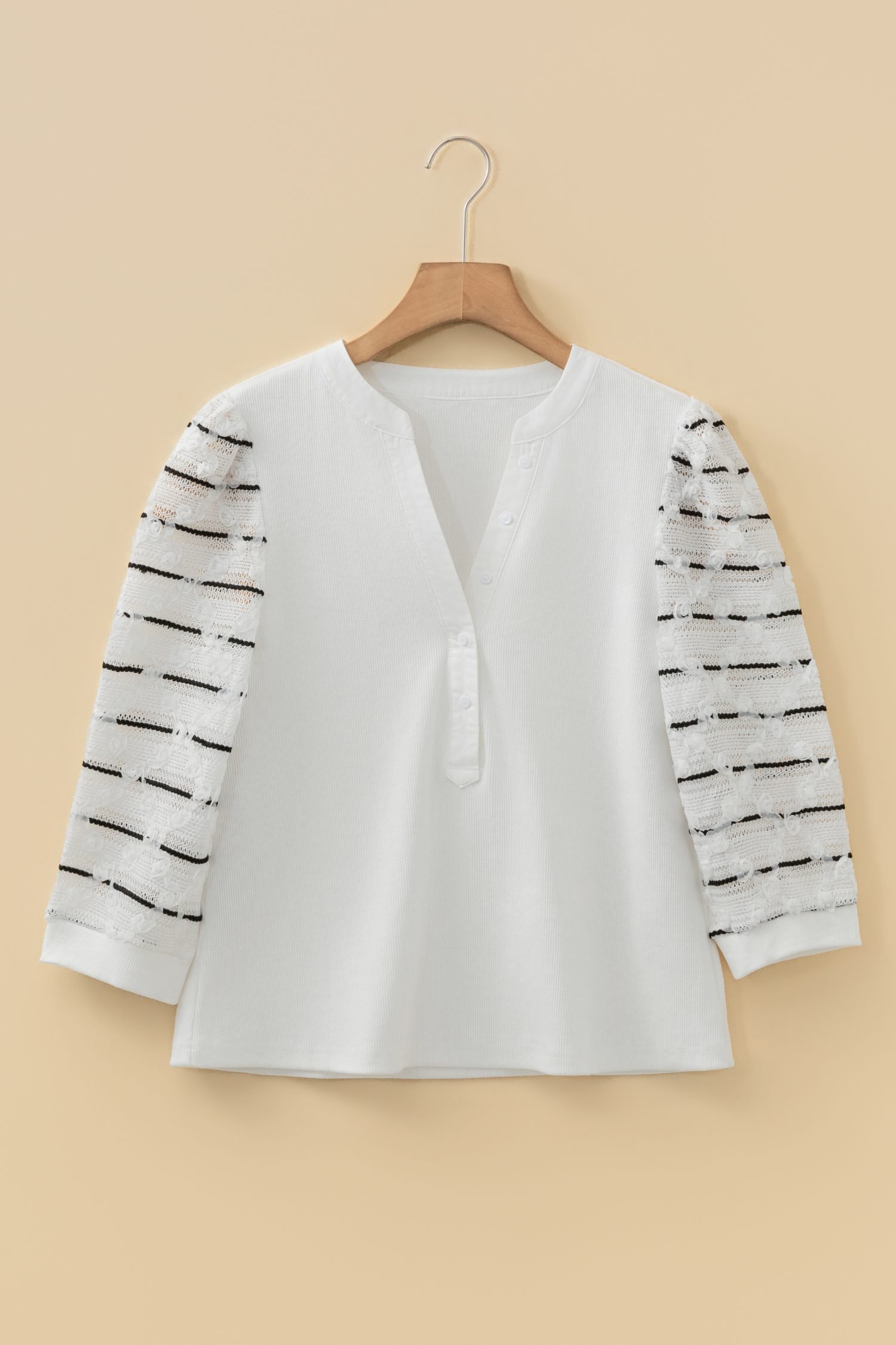 Be the first to review “White Button Placket 3/4 Striped Sleeve Patchwork Rib Knit Top”
