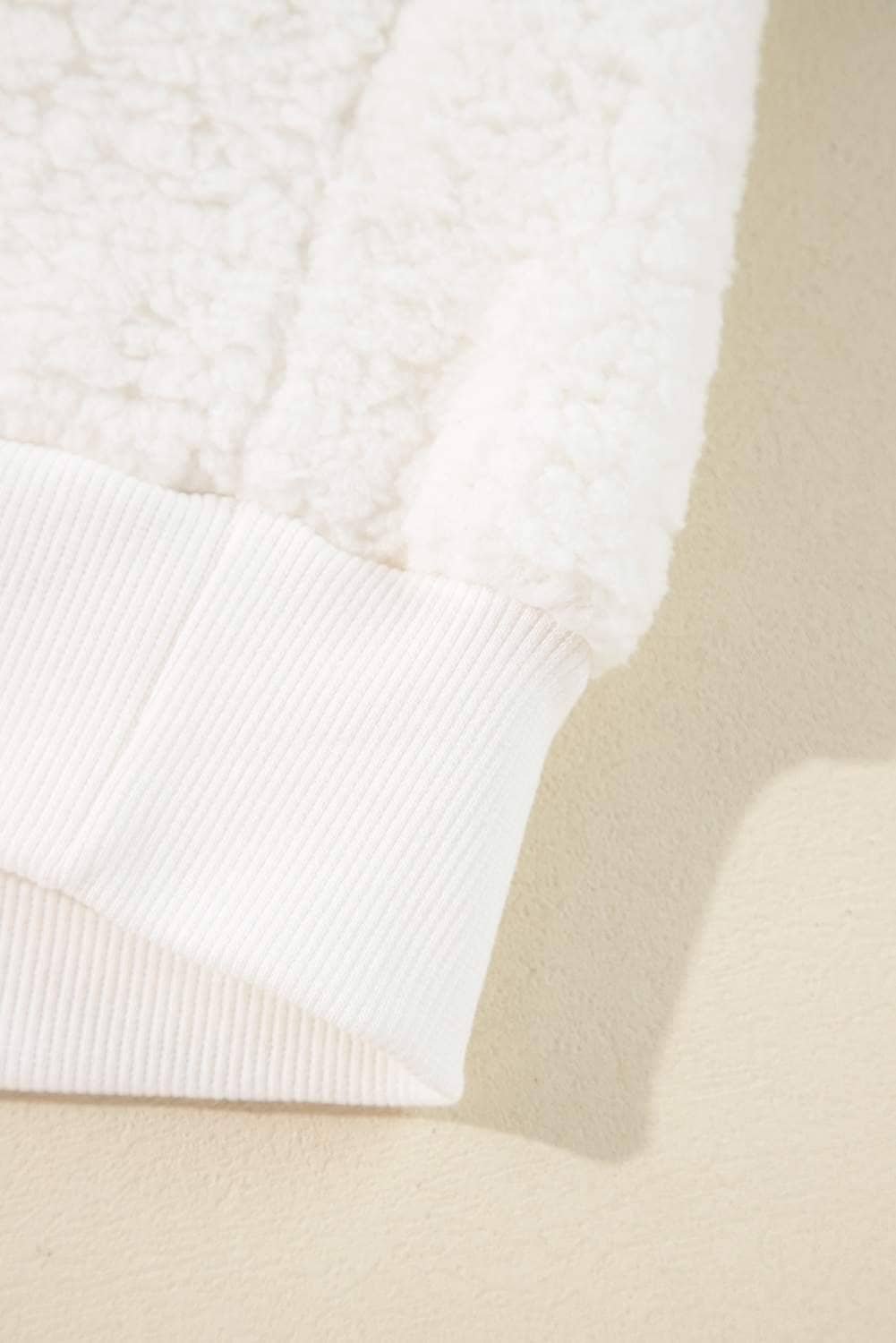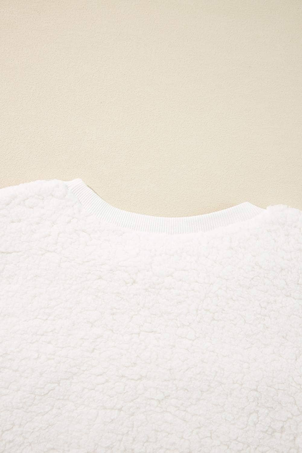 Made with warm sherpa material, this sweatshirt is not only stylish but also provides extra warmth and comfort.