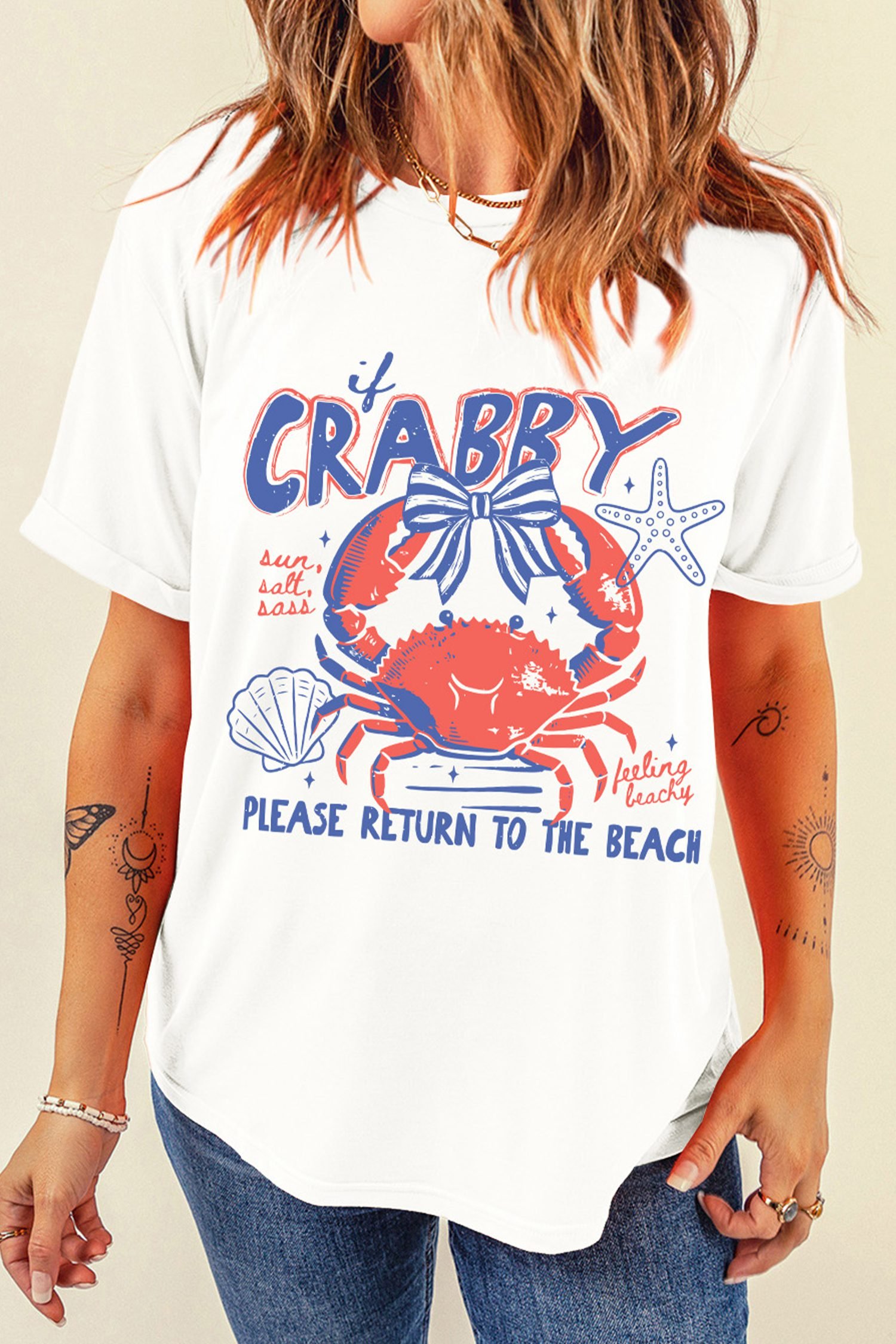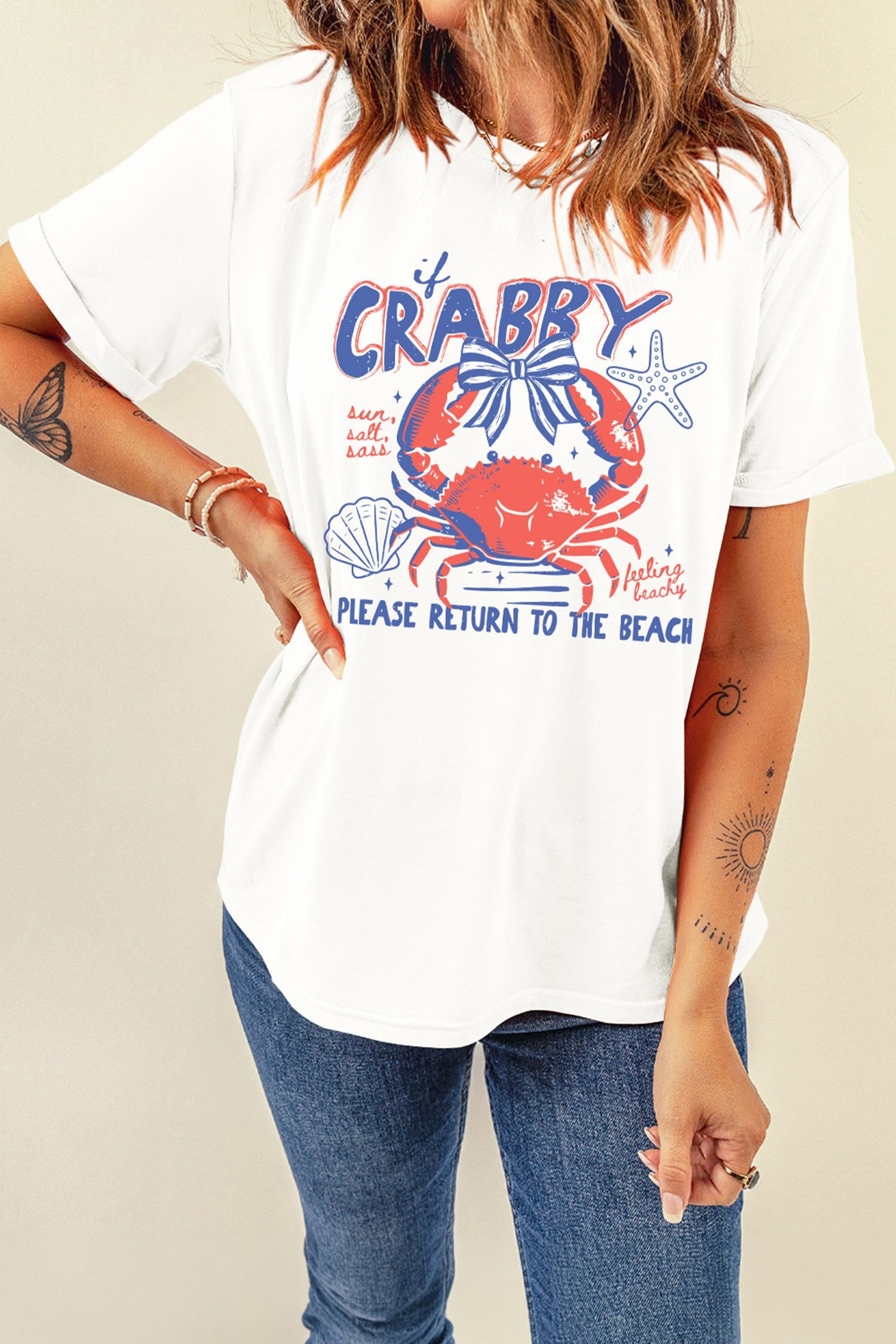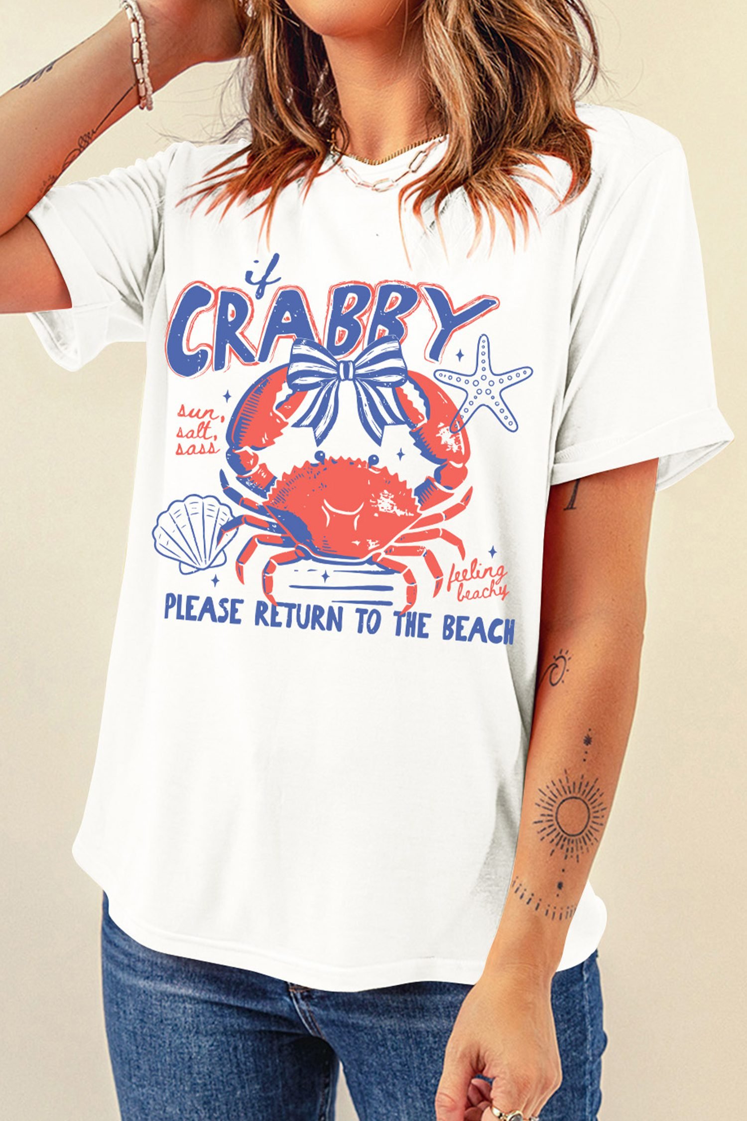 Featuring a cute coquette-inspired crab graphic with beachy charm.