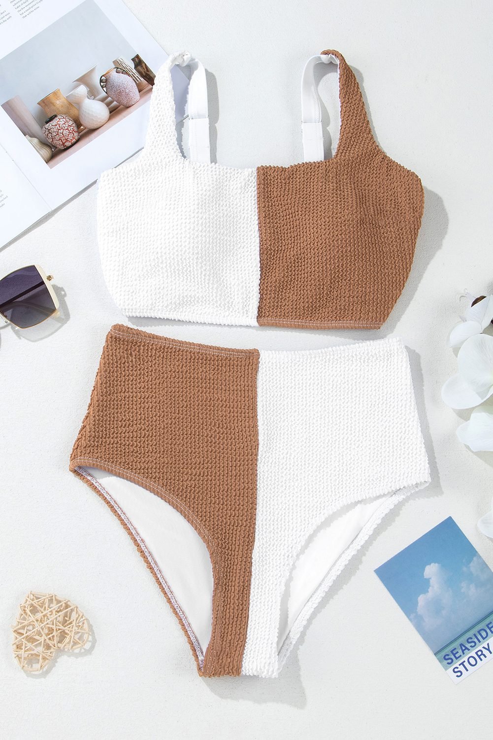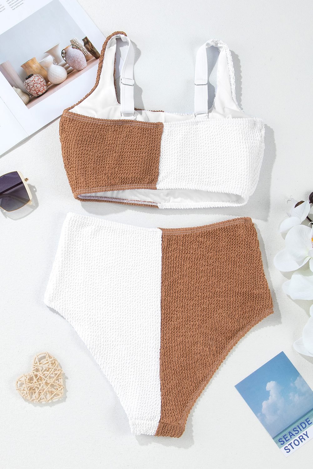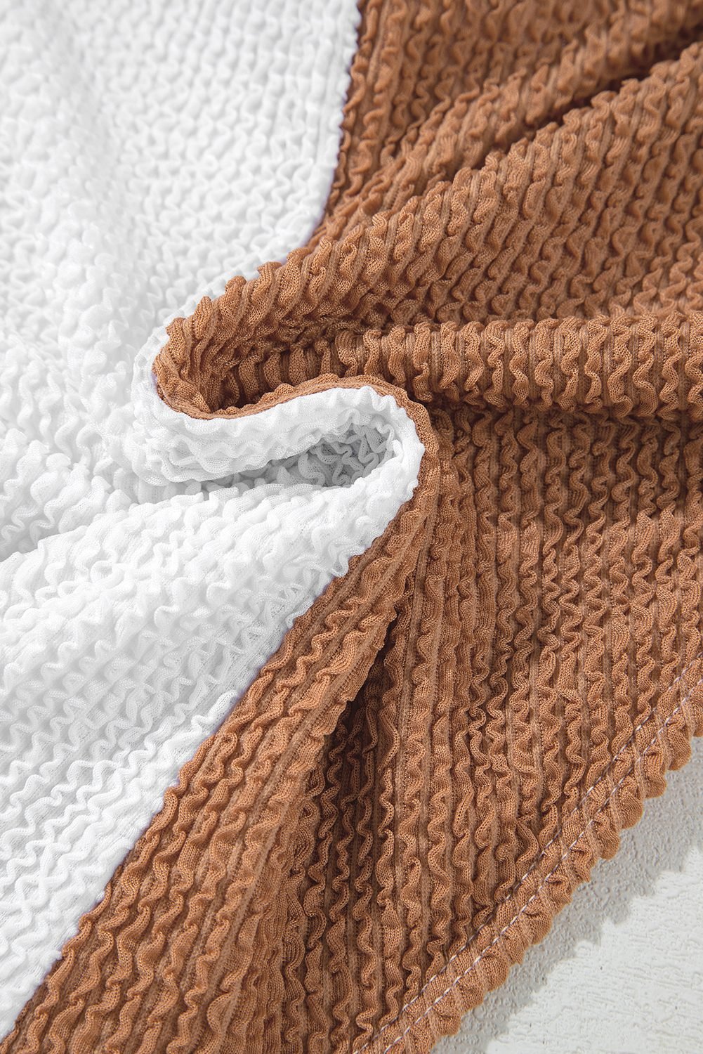 Corded fabric ensures a structured and flattering fit, ideal for confidence by the pool or beach.