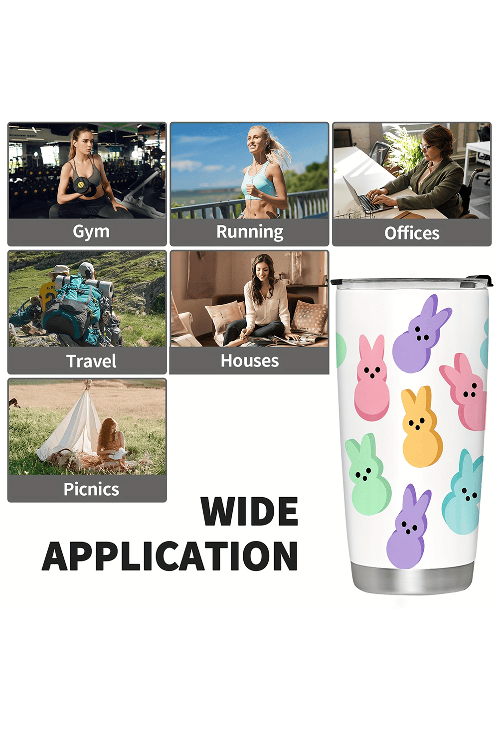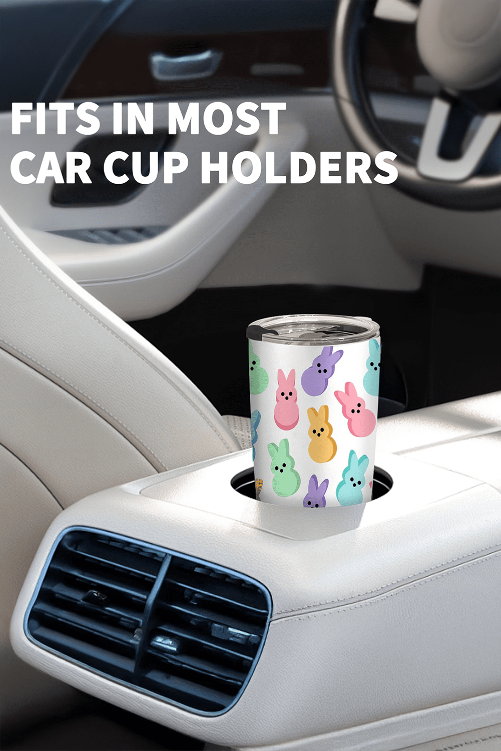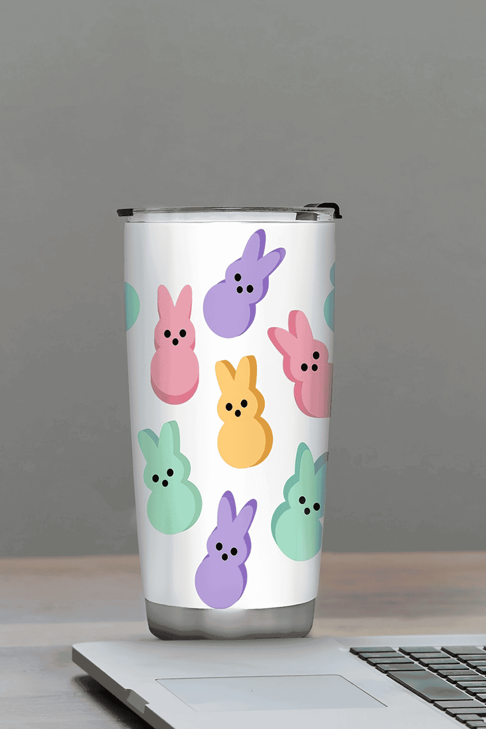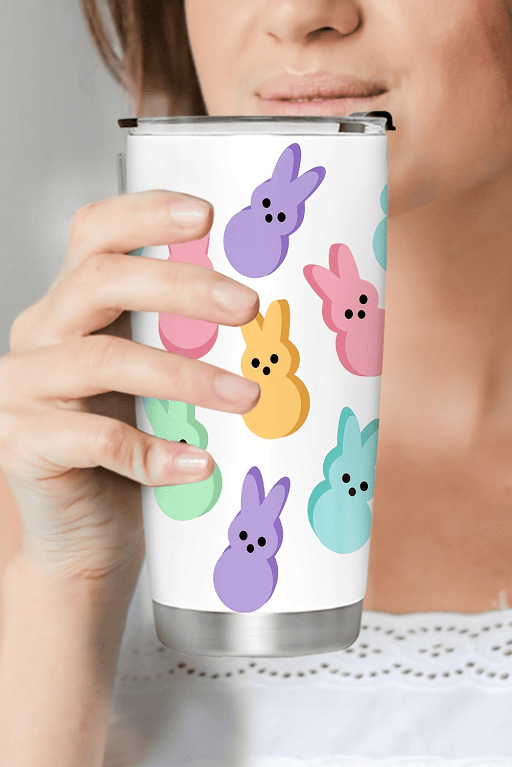 White Cute Bunny Printed Stainless Steel Thermal Vacuum Cup 20Oz