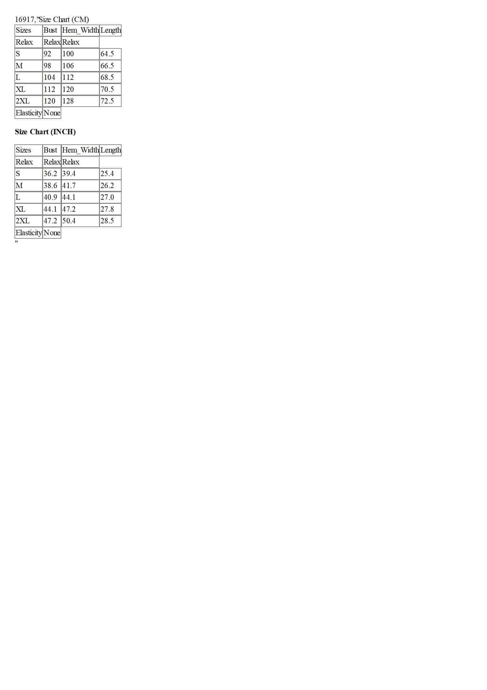 Size Chart (CM)