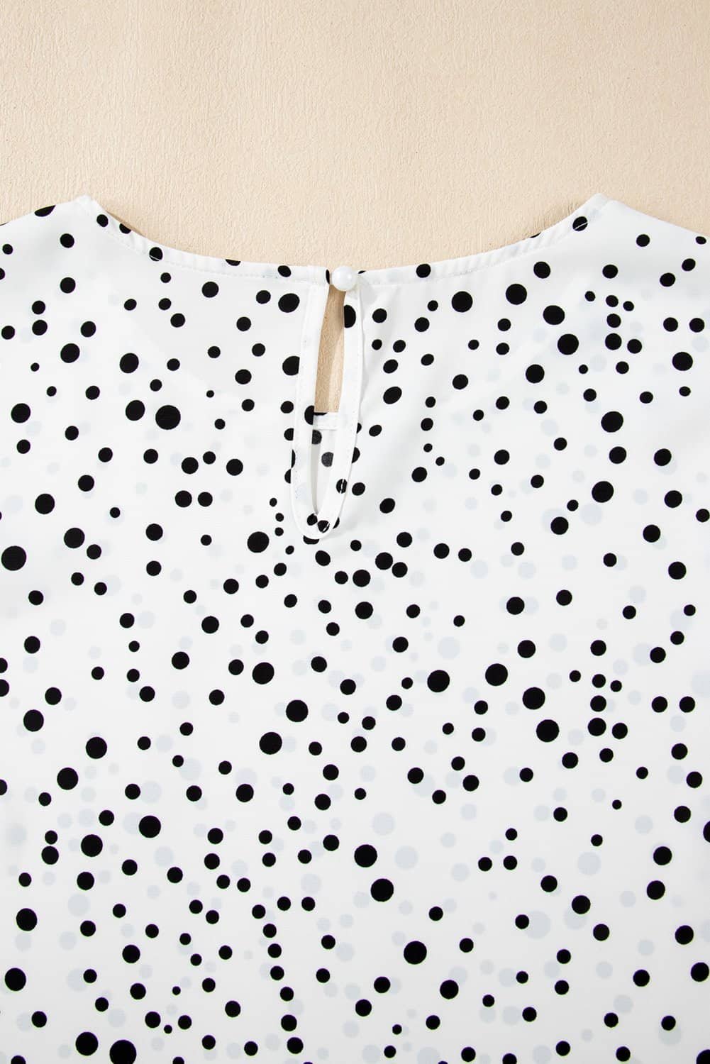 White Dalmatian Print Layered Ruffled Short Sleeve Blouse