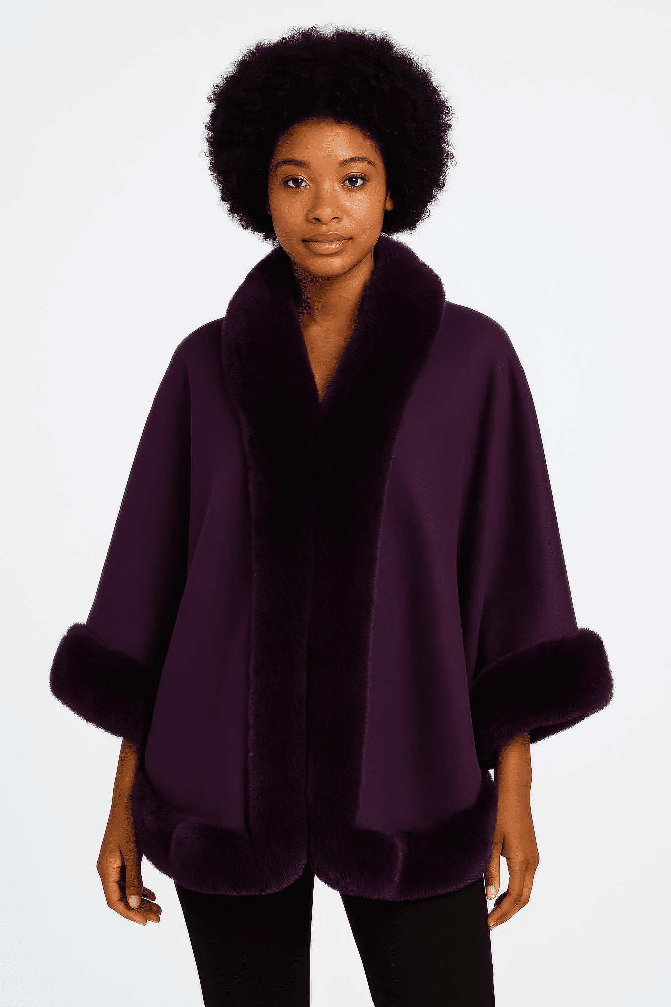 Product Description: Understated elegance meets cozy luxury in the White Faux Fur Trim Open-Front Cape Jacket. Designed with a clean, flowing silhouette, this cape is trimmed with ultra-soft faux fur along the collar, cuffs, and hemline for a refined finish. The open-front design allows for effortless layering, while the pure white hue brings timeless sophistication to any outfit. Ideal for formal events, cool-weather gatherings, or simply elevating everyday wear, this piece offers warmth without sacrificing style. Product Details: Open-front cape design in soft white Plush faux fur trim at collar, sleeve cuffs, and hem Relaxed fit with wide sleeves for layering comfort Midweight for warmth with elegant drape Ideal for eveningwear, weddings, or chic daytime looks A timeless addition to any winter wardrobe Size Guide: For accurate sizing guidance, please review our size chart available on the website. Shipping and Returns: Fast Shipping: We offer speedy delivery to your doorstep. Hassle-Free Returns: If you’re not completely satisfied, our flexible return policy ensures your peace of mind.