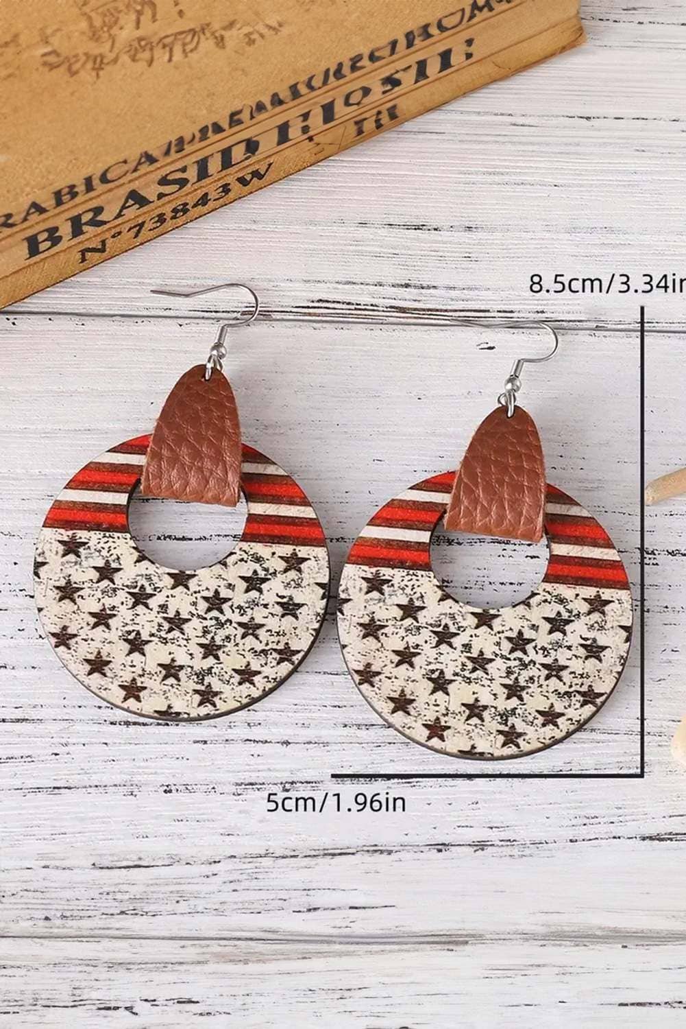 Be the first to review “White Flag Print Round Wooden Dangle Earrings”