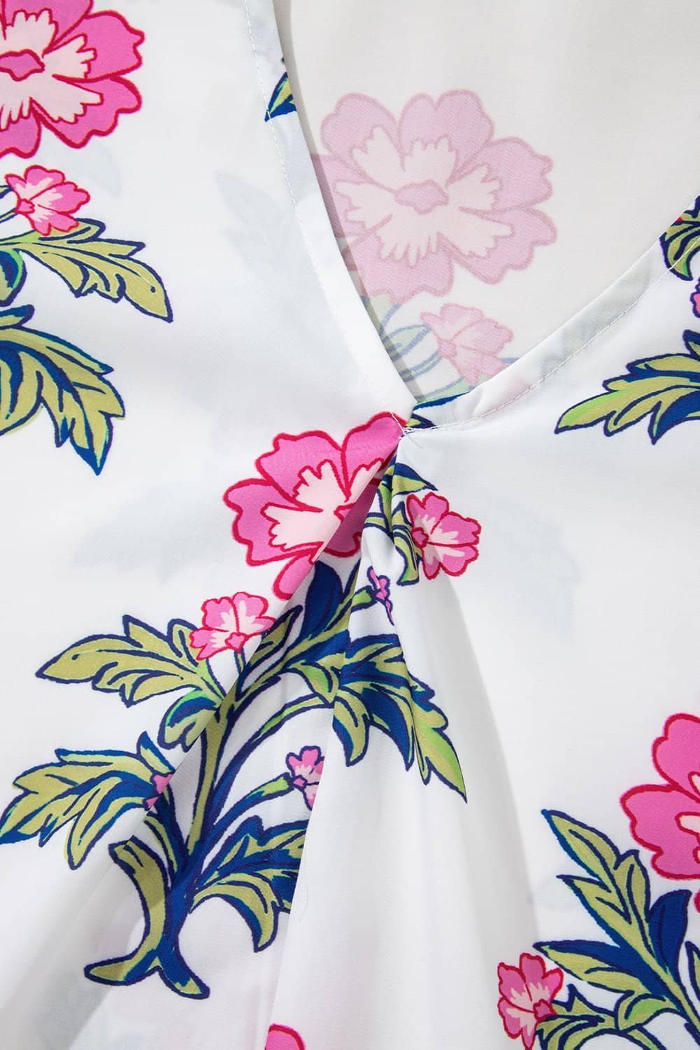 Be the first to review “White Floral Colorblock Stripe Knot Bubble Sleeve V Neck Blouse”