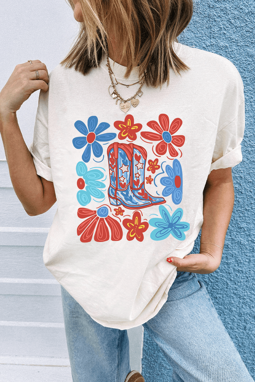 Pair with jeans for a patriotic look ideal for Fourth of July festivities.