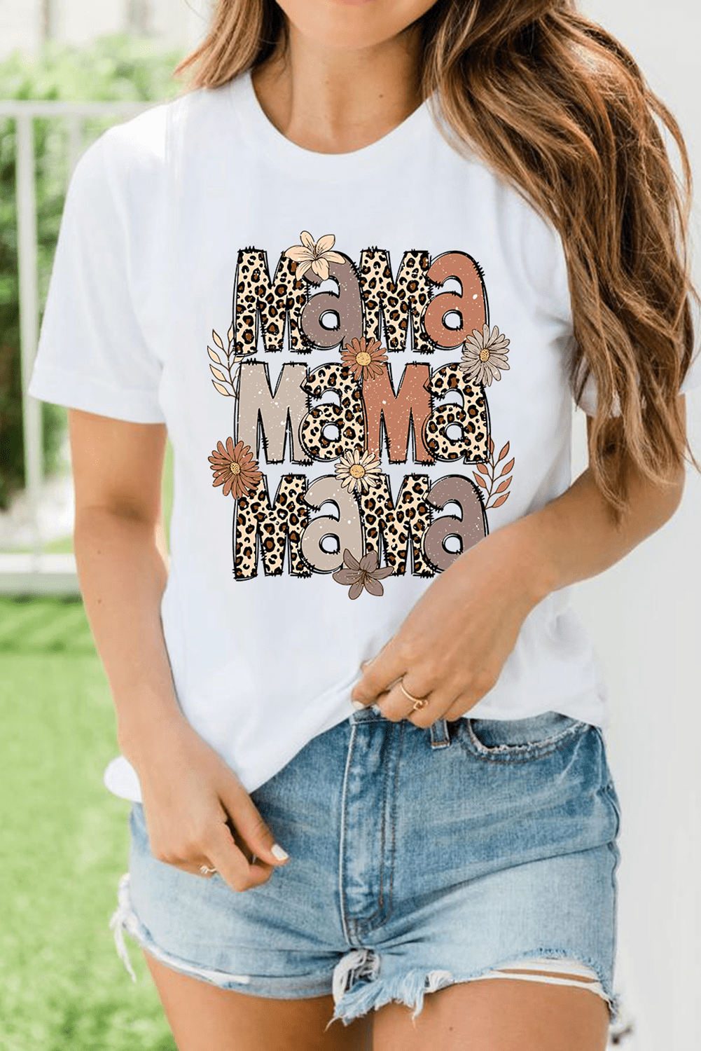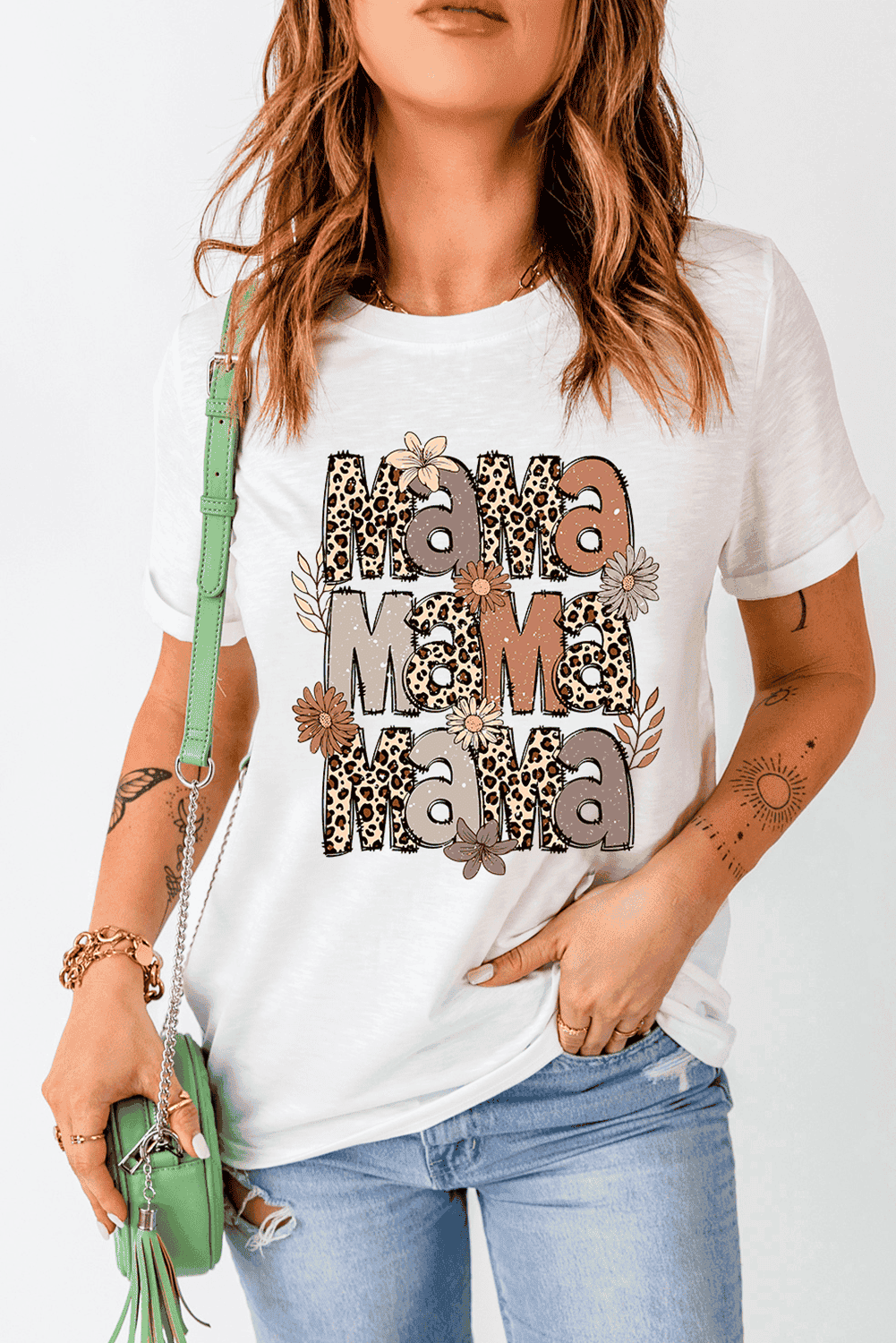 Features a unique blend of floral and leopard prints, combined with a “MaMa” graphic.