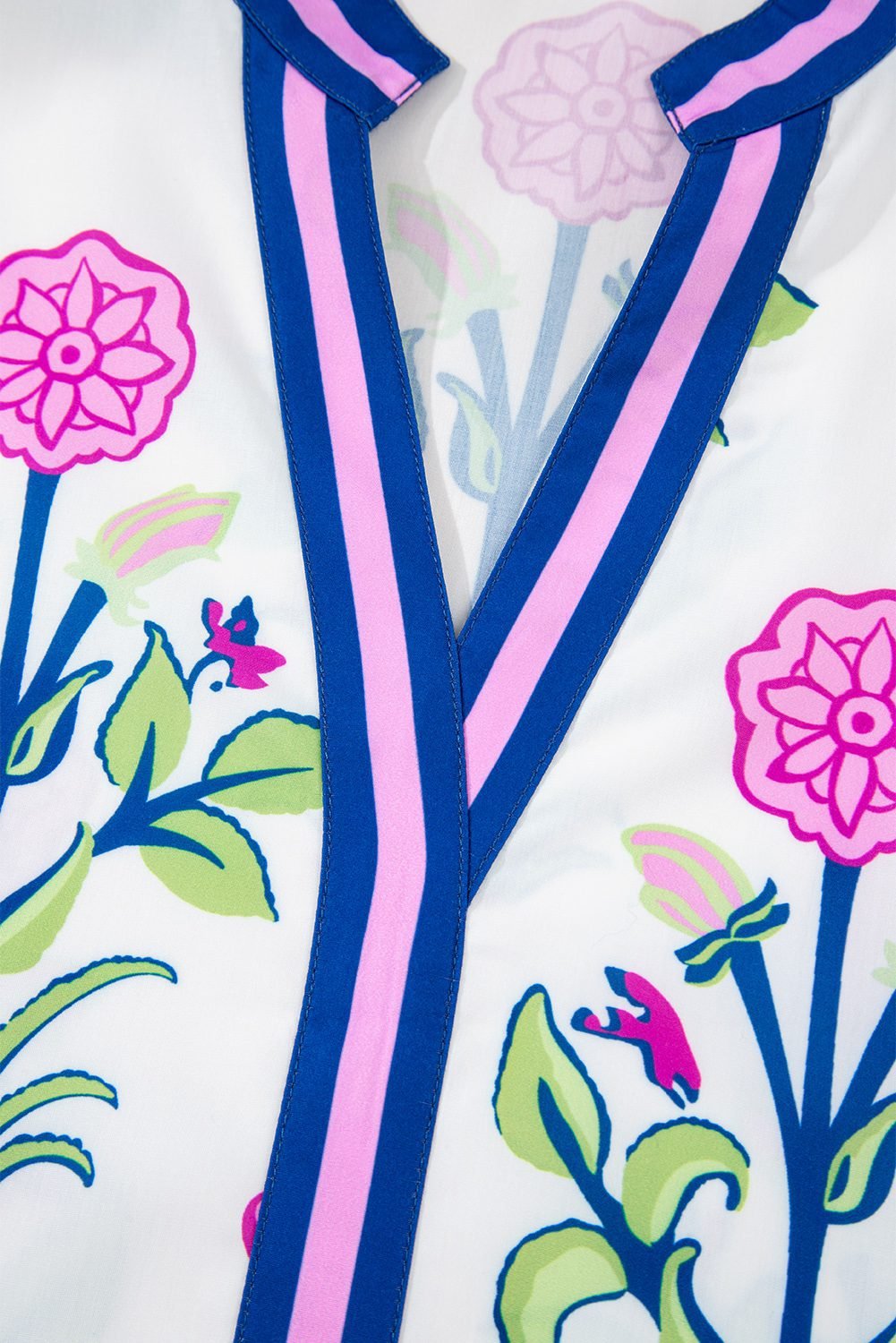 - Elegant floral print dress with chic striped trim for a modern contrast design.