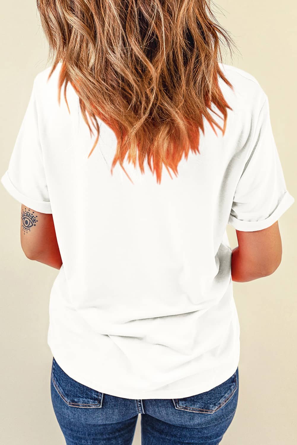 Casual t shirt for women with a round neck and cuffed sleeves.