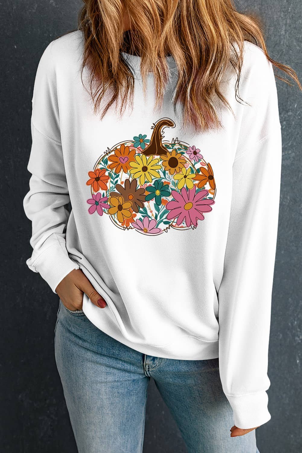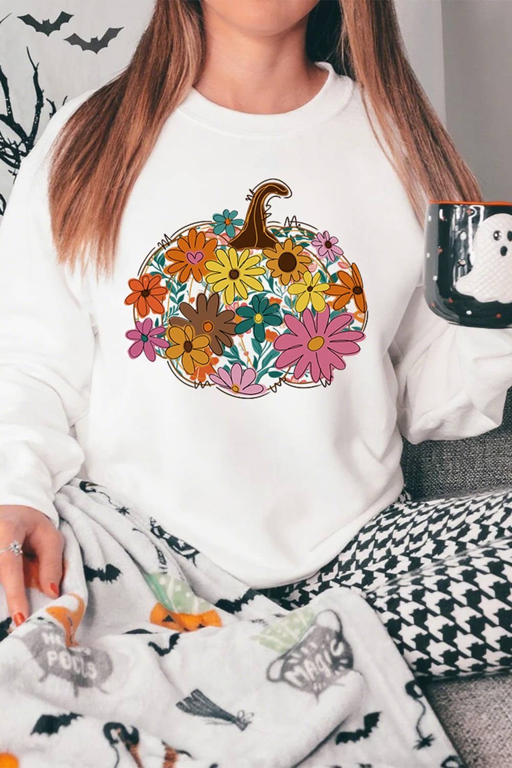 White Floral Pumpkin Custom Graphic Sweatshirt