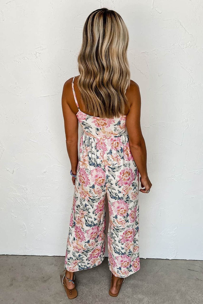 - Featured with a high waist, spaghetti straps, wide legs, and a floral pattern
