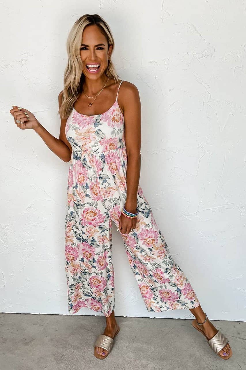 - This floral jumpsuit adds a touch of femininity and elegance
