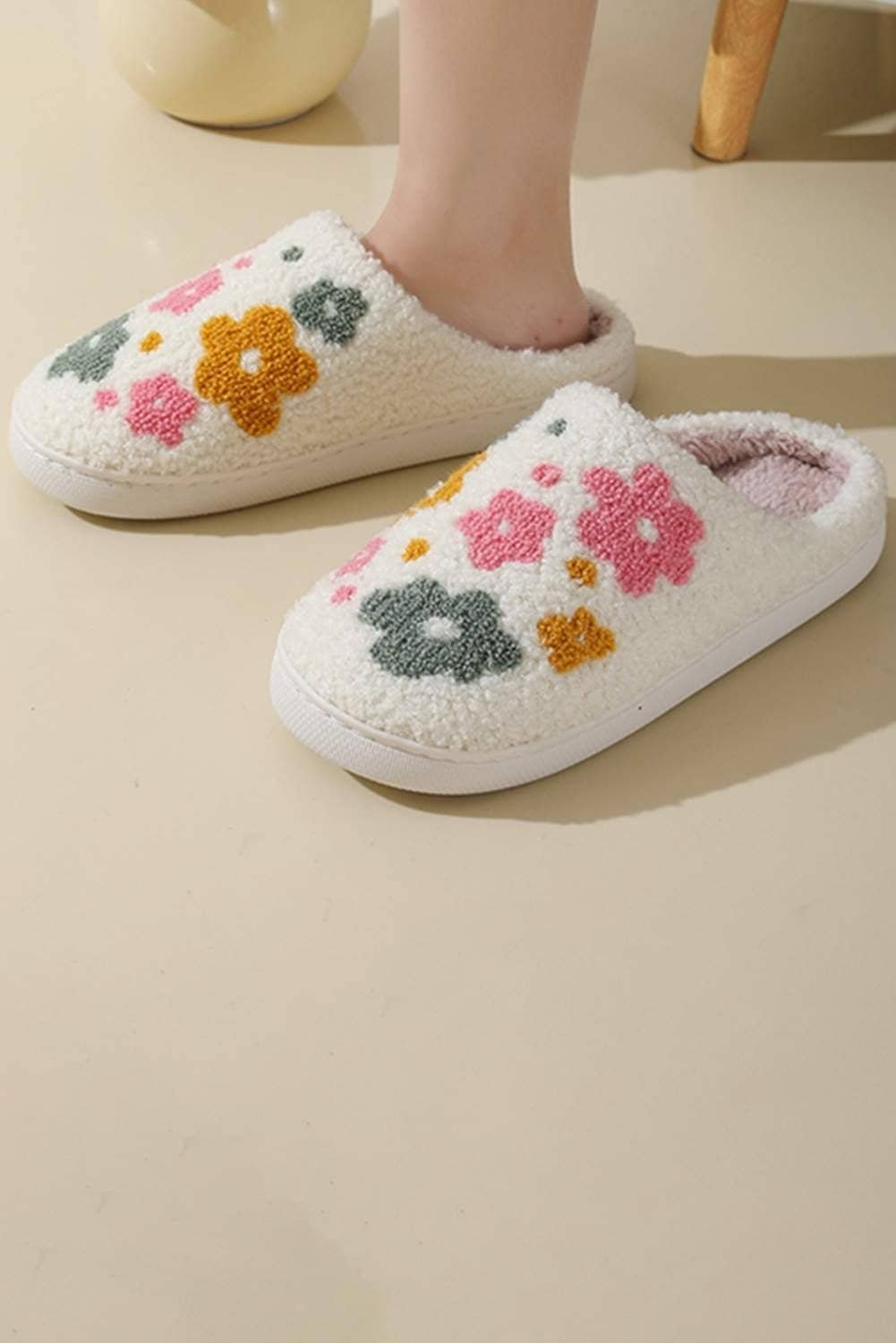 - The plush slippers feature a soft material for cozy comfort.
