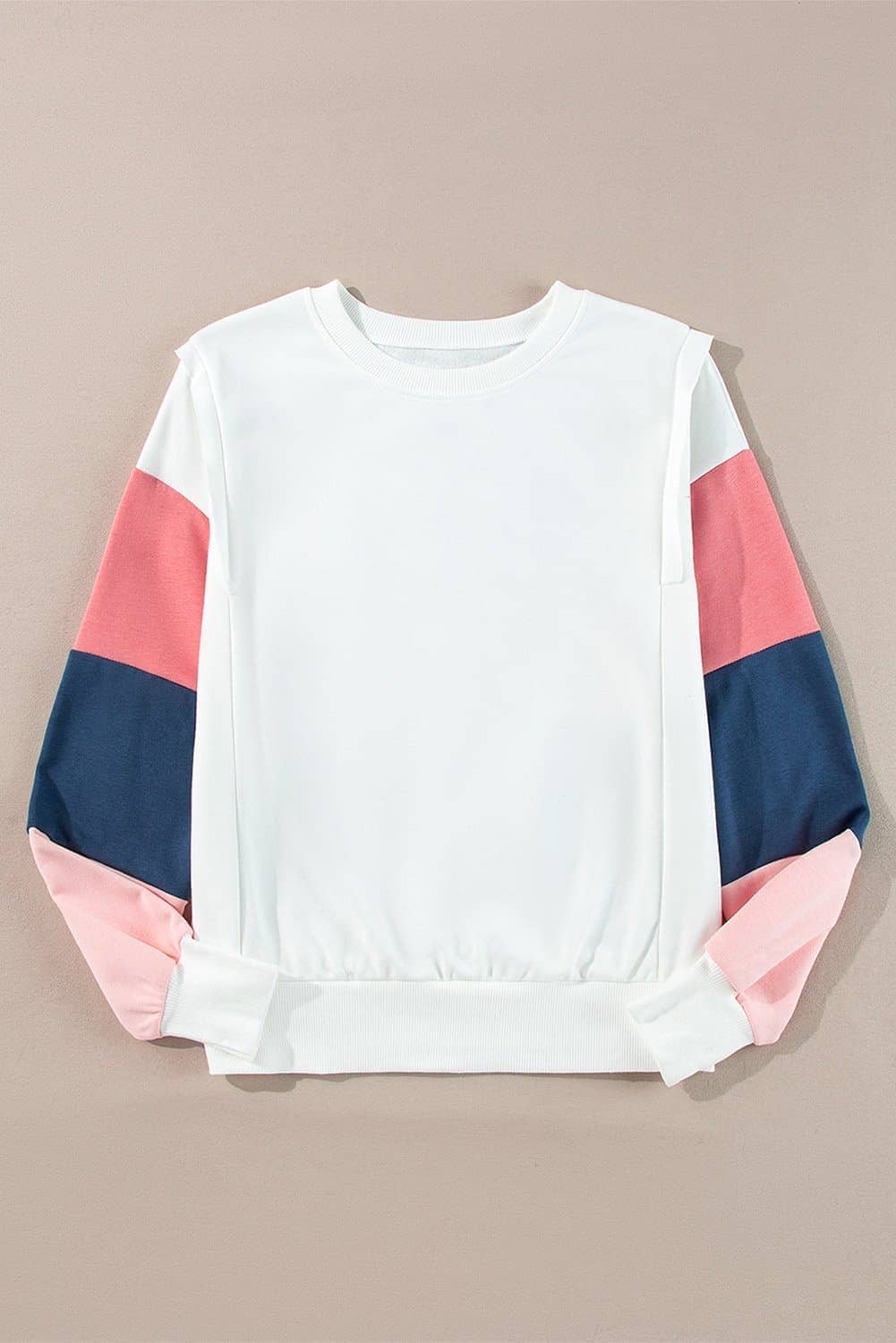 White French Terry Color Block Long Sleeve Top