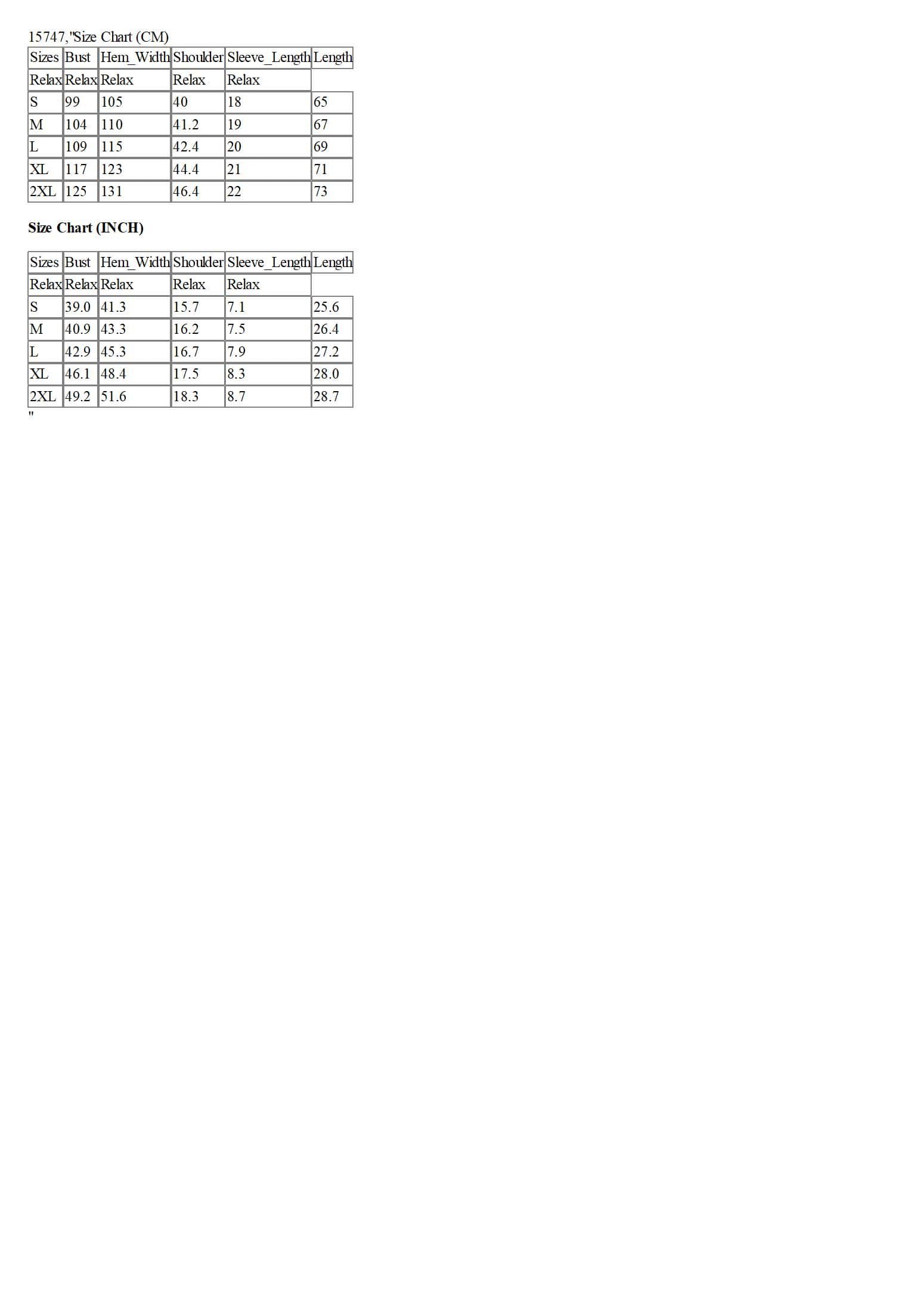 Size Chart (CM)