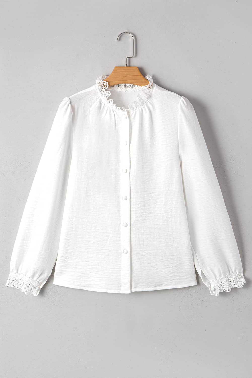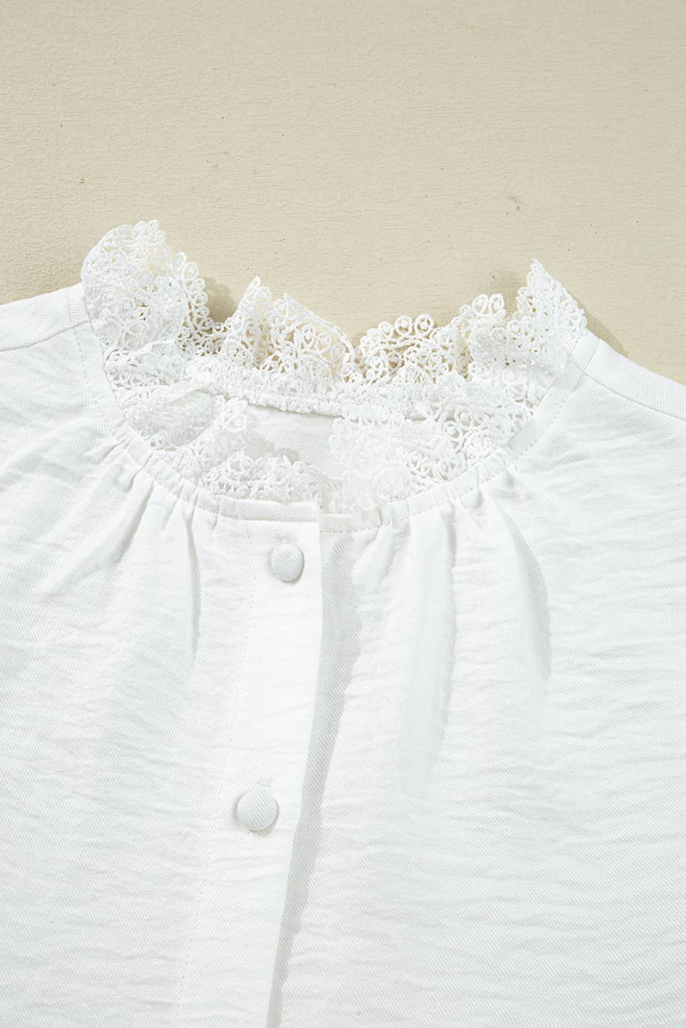 Be the first to review “White Lace Patchwork Buttoned Stand Neck Loose Shirt”
