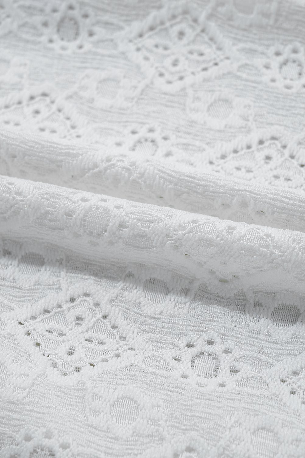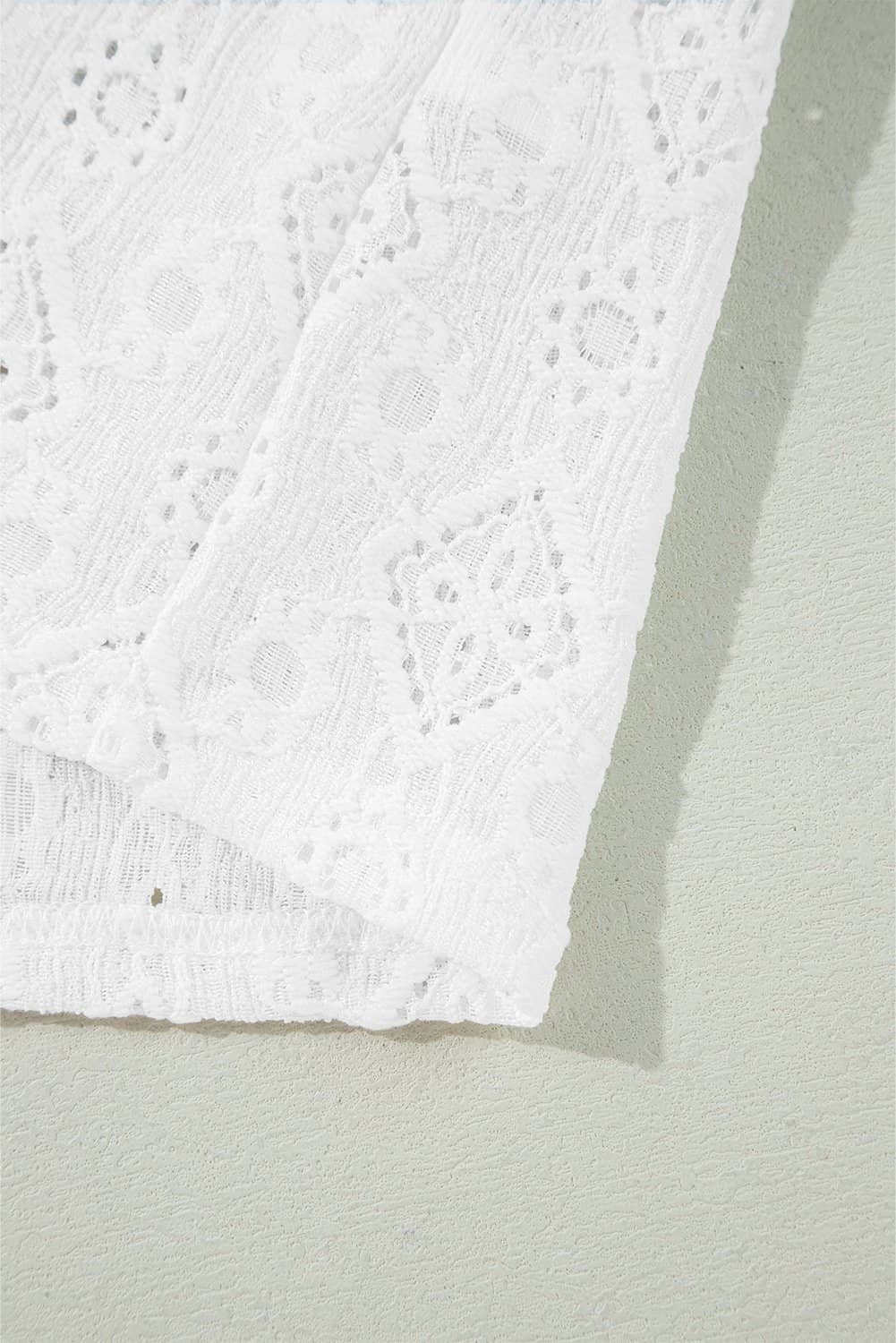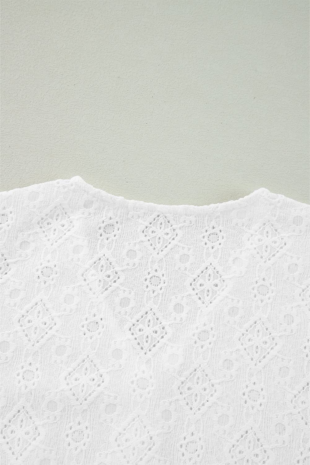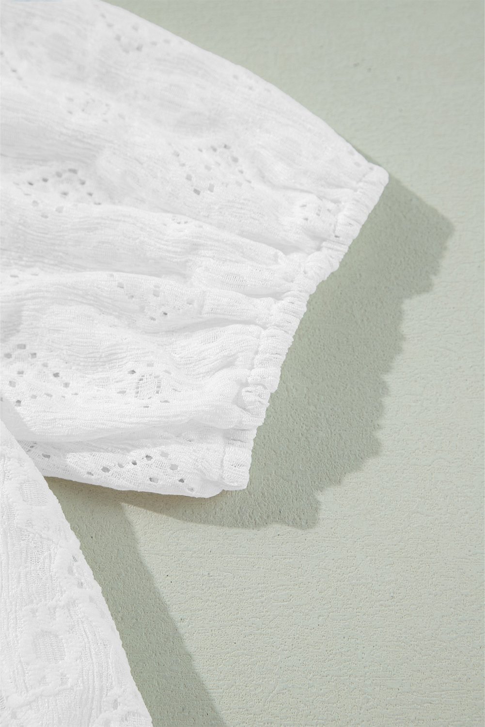 White Lace Puff Sleeve V Neck Button Up Shirt